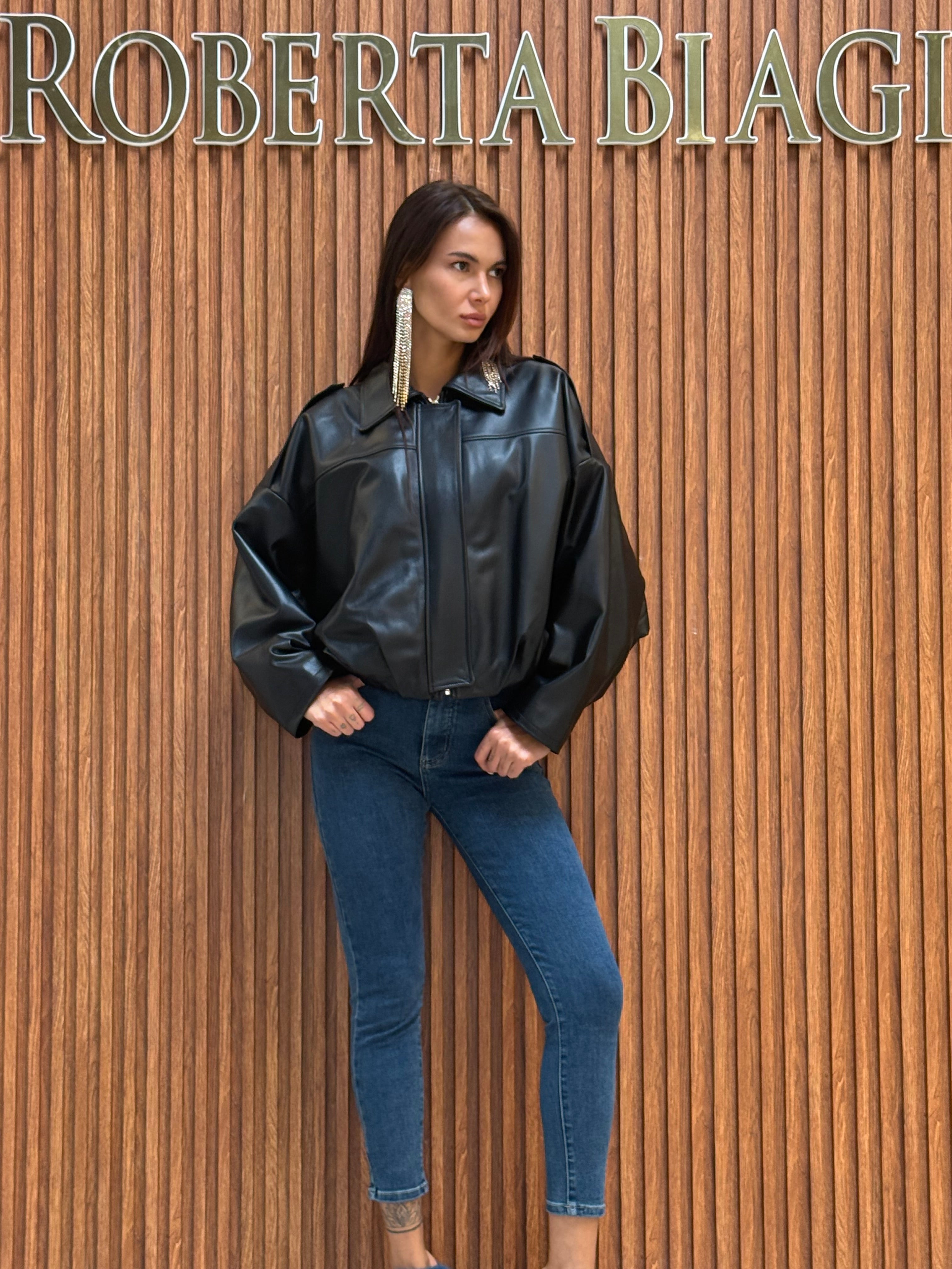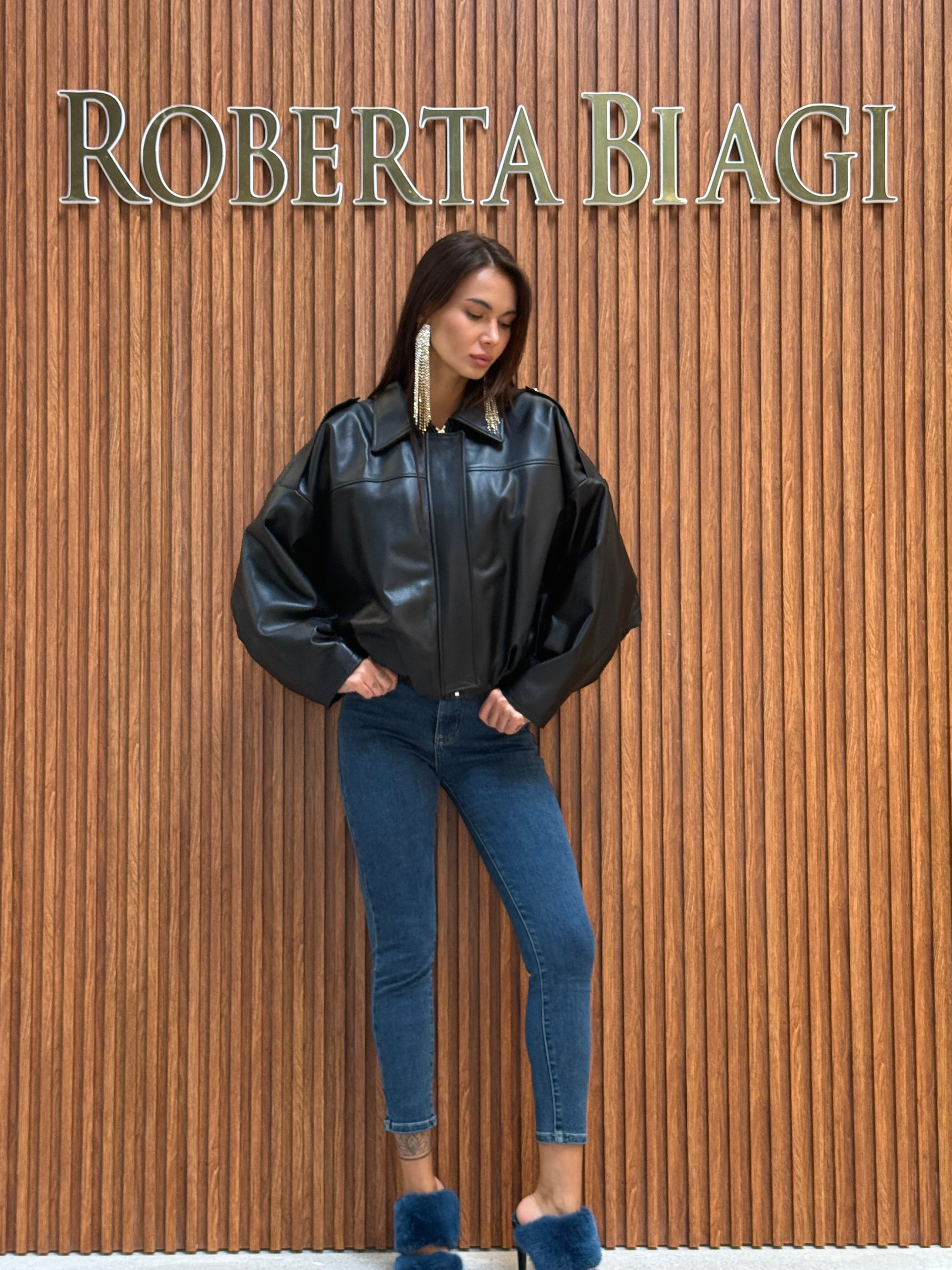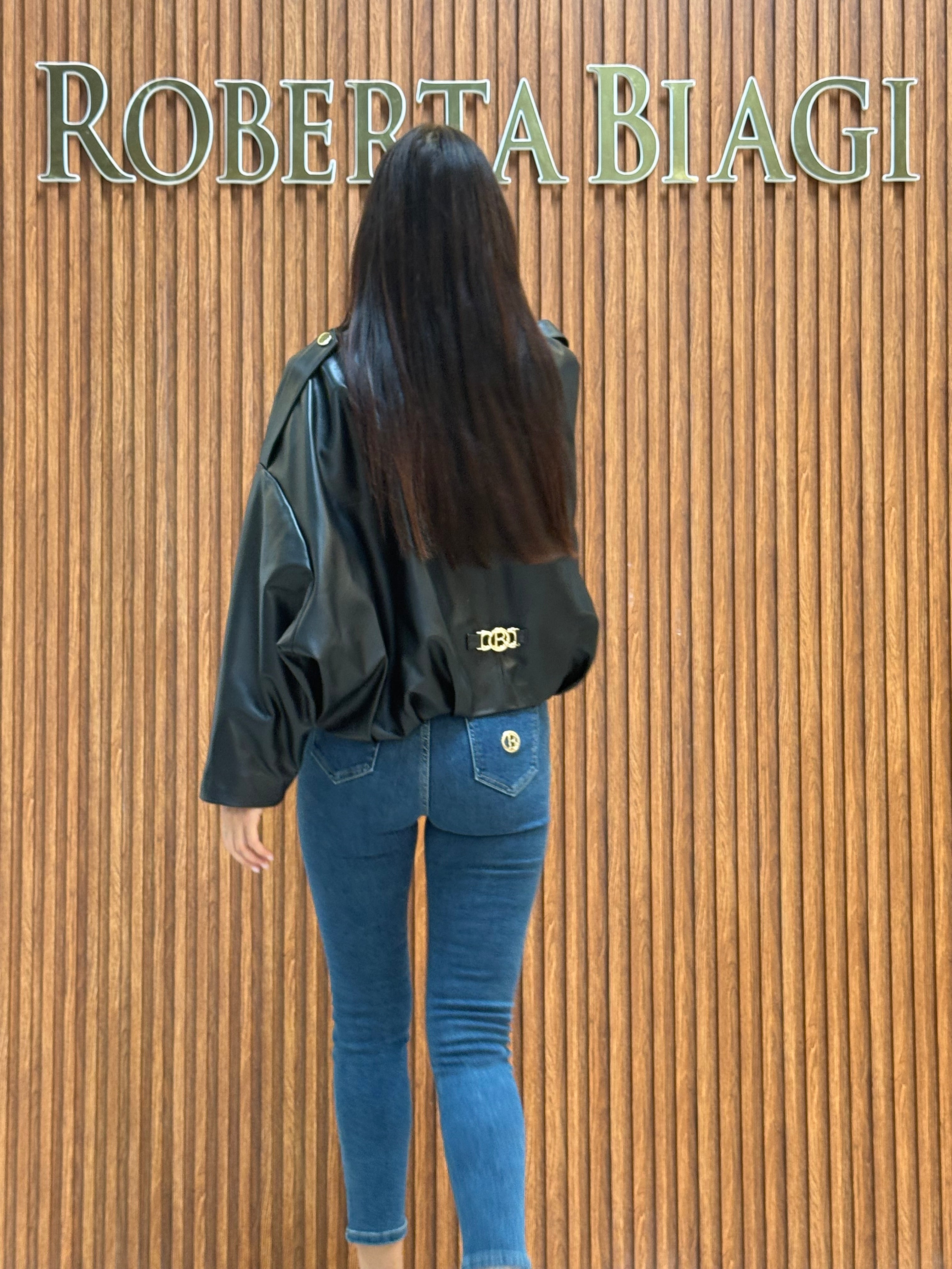 GIUBBINO IN PELLE CON MANICA TRAPEZIO DETTAGLIO RB SUL RETRO
