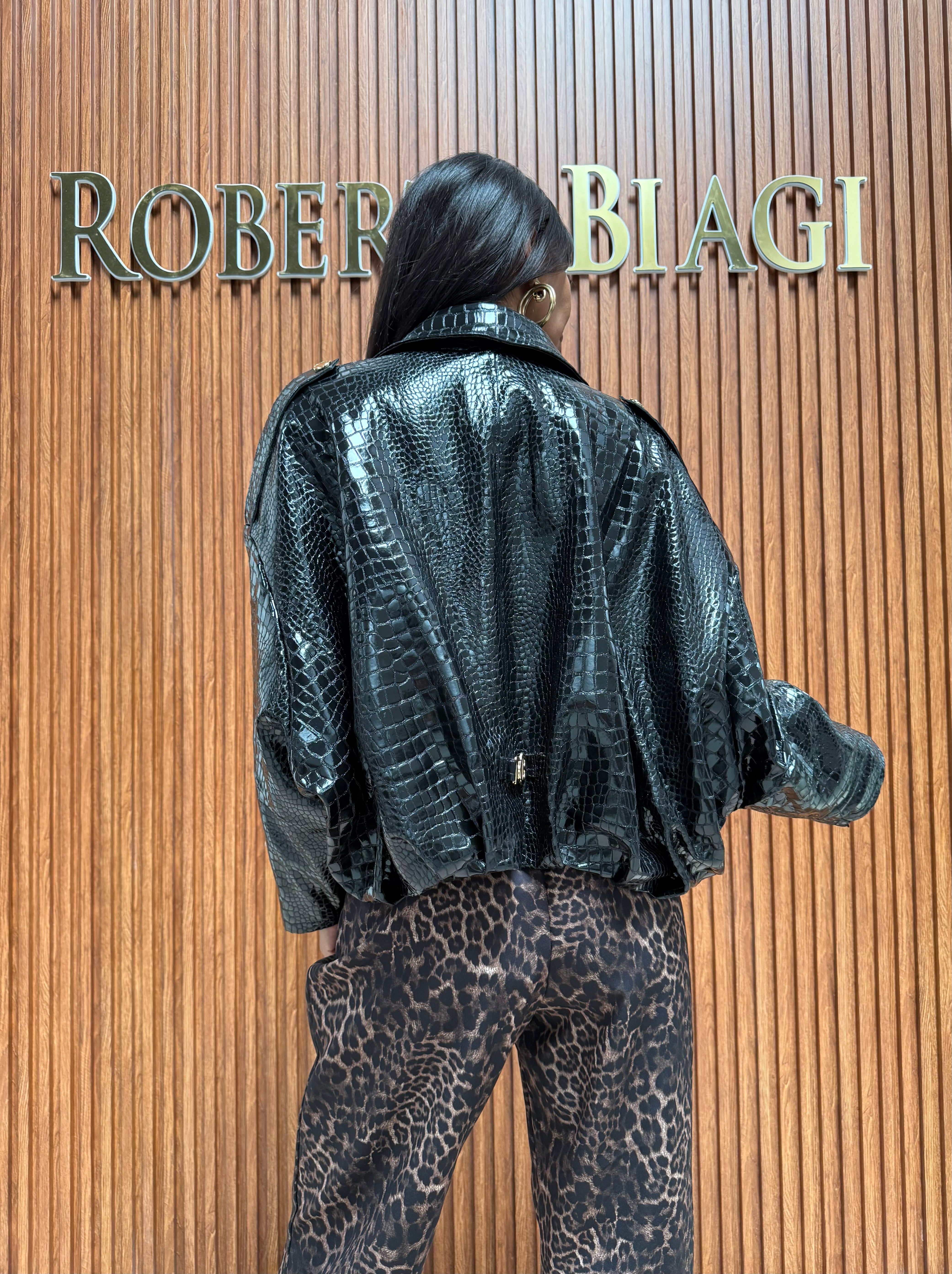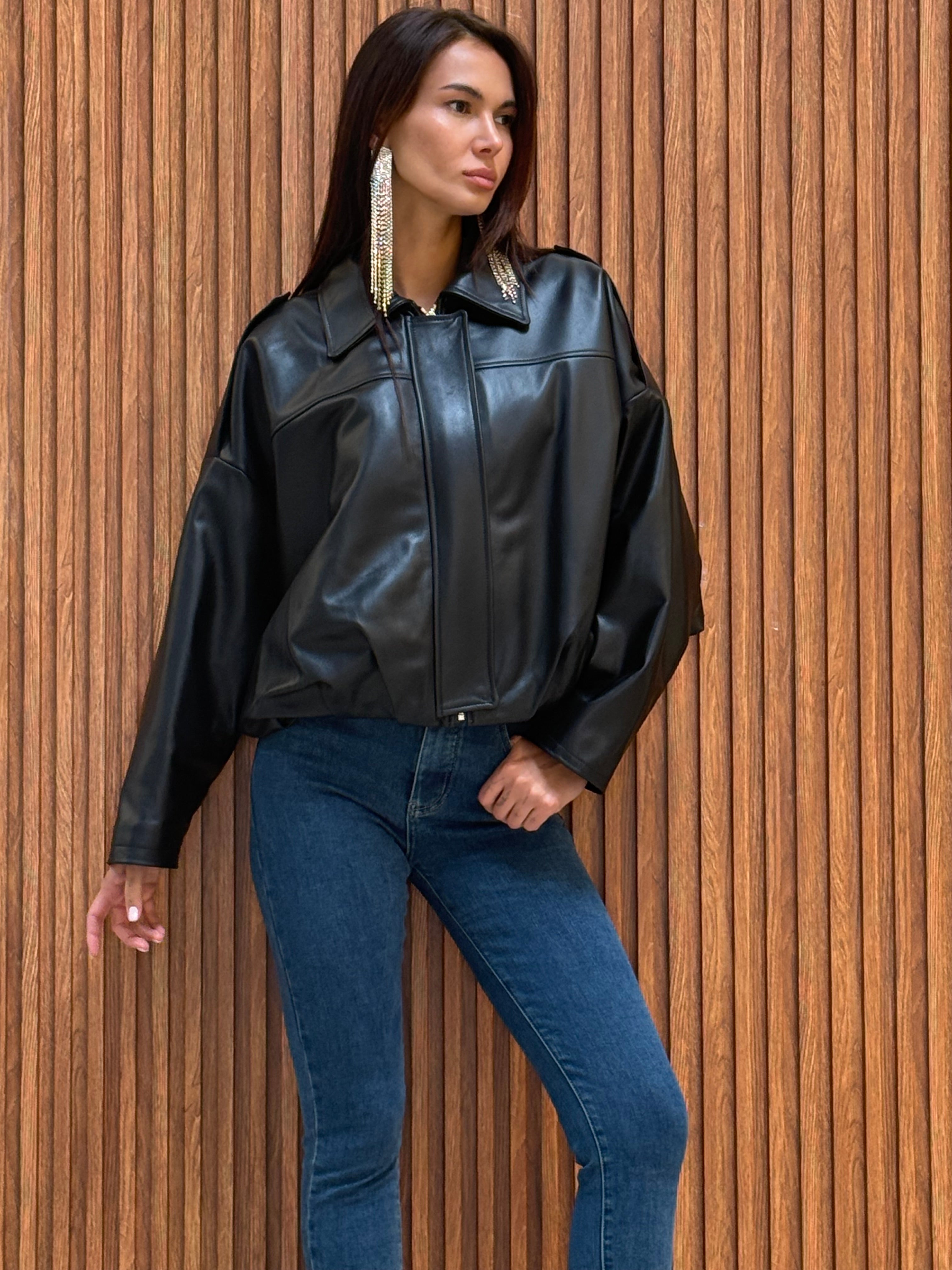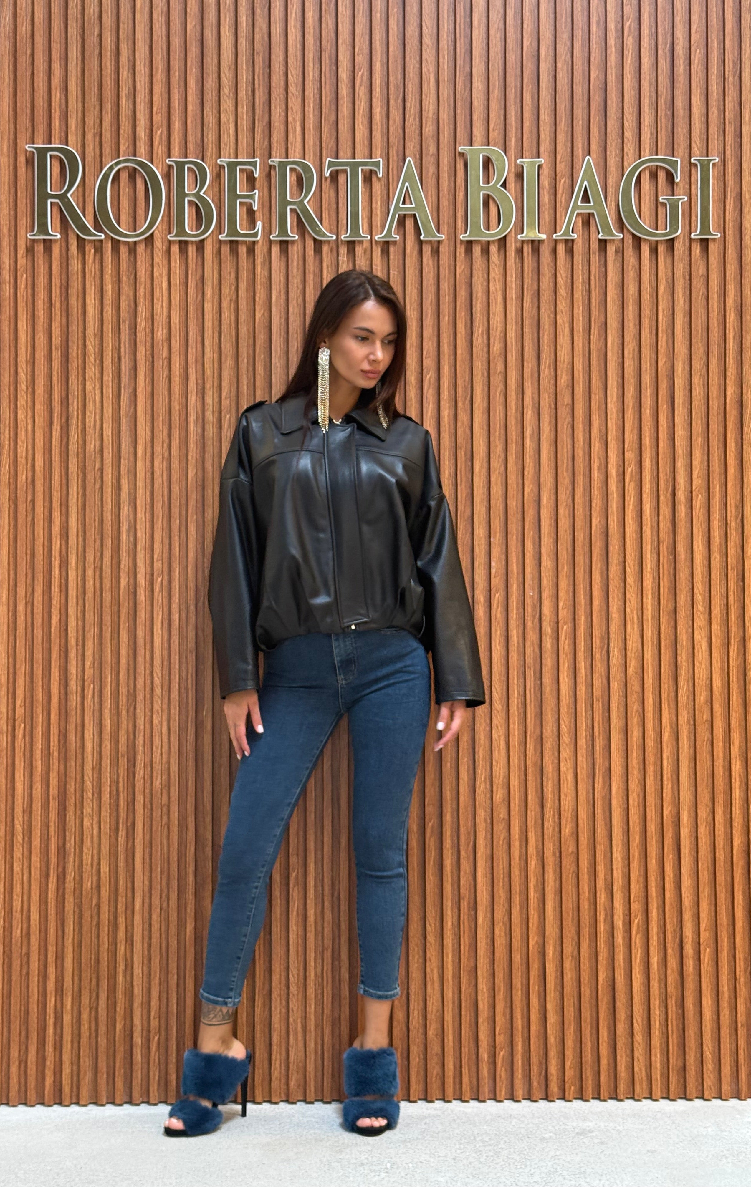 GIUBBINO IN PELLE CON MANICA TRAPEZIO DETTAGLIO RB SUL RETRO