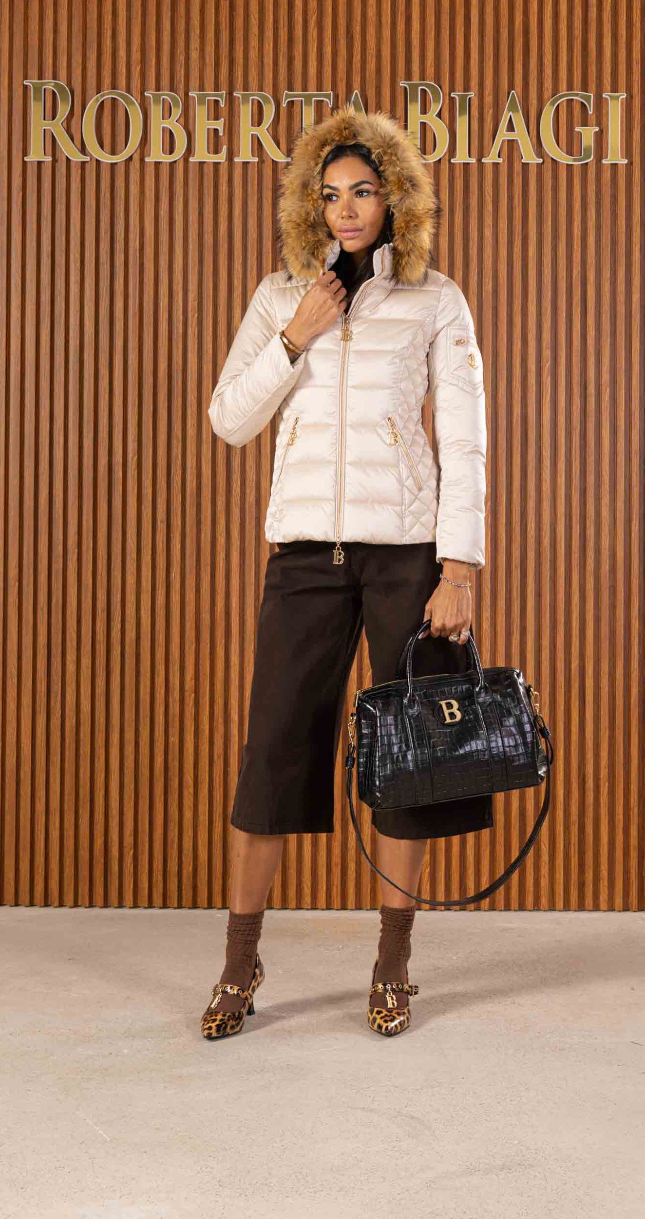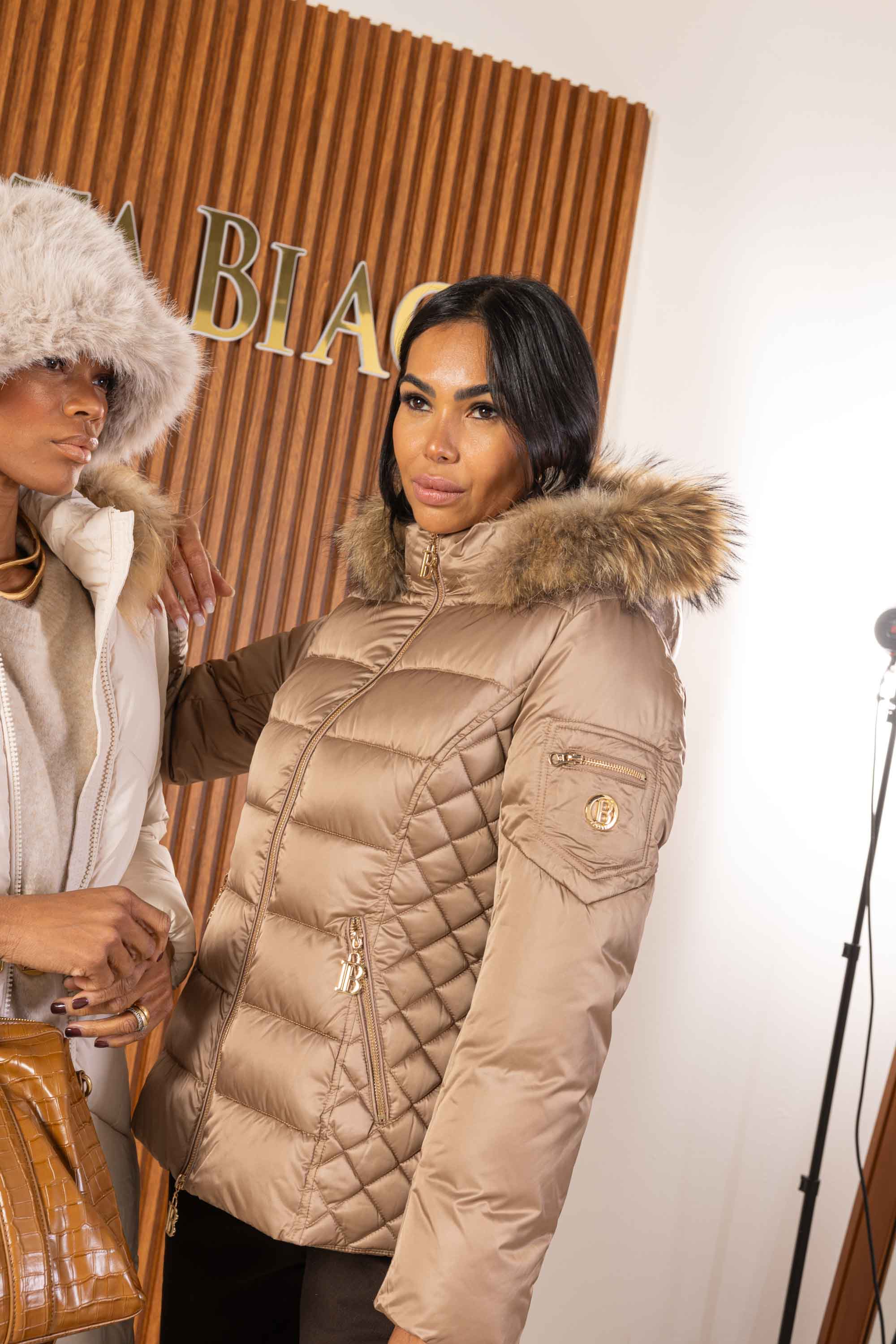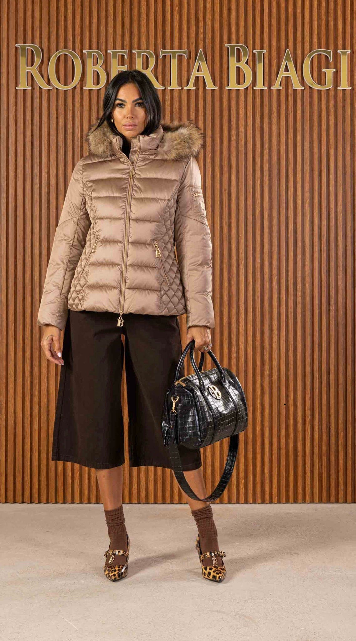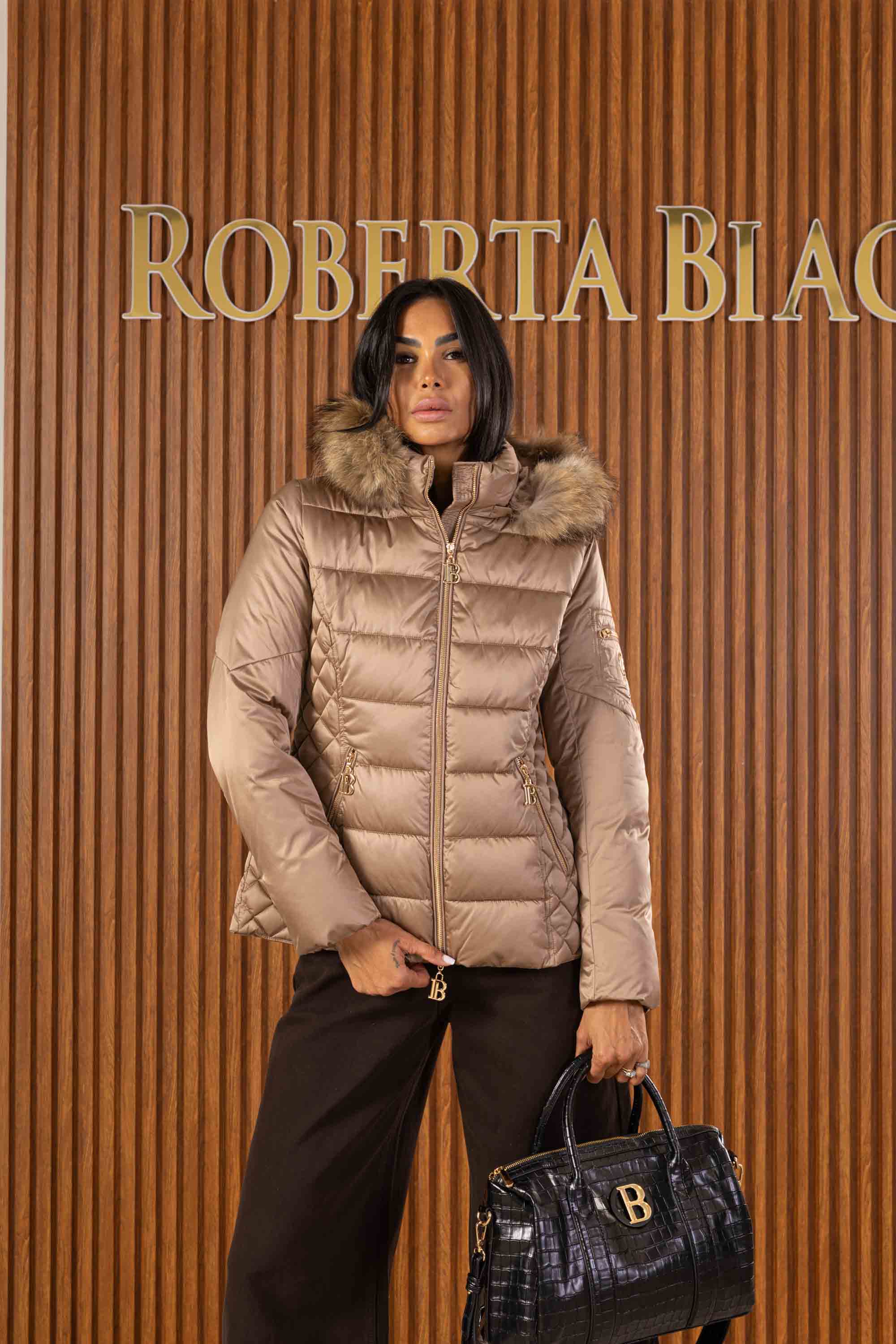 PIUMINO CORTO TRAPUNTATO CON CAPPUCCIO IN VERA PELLICCIA