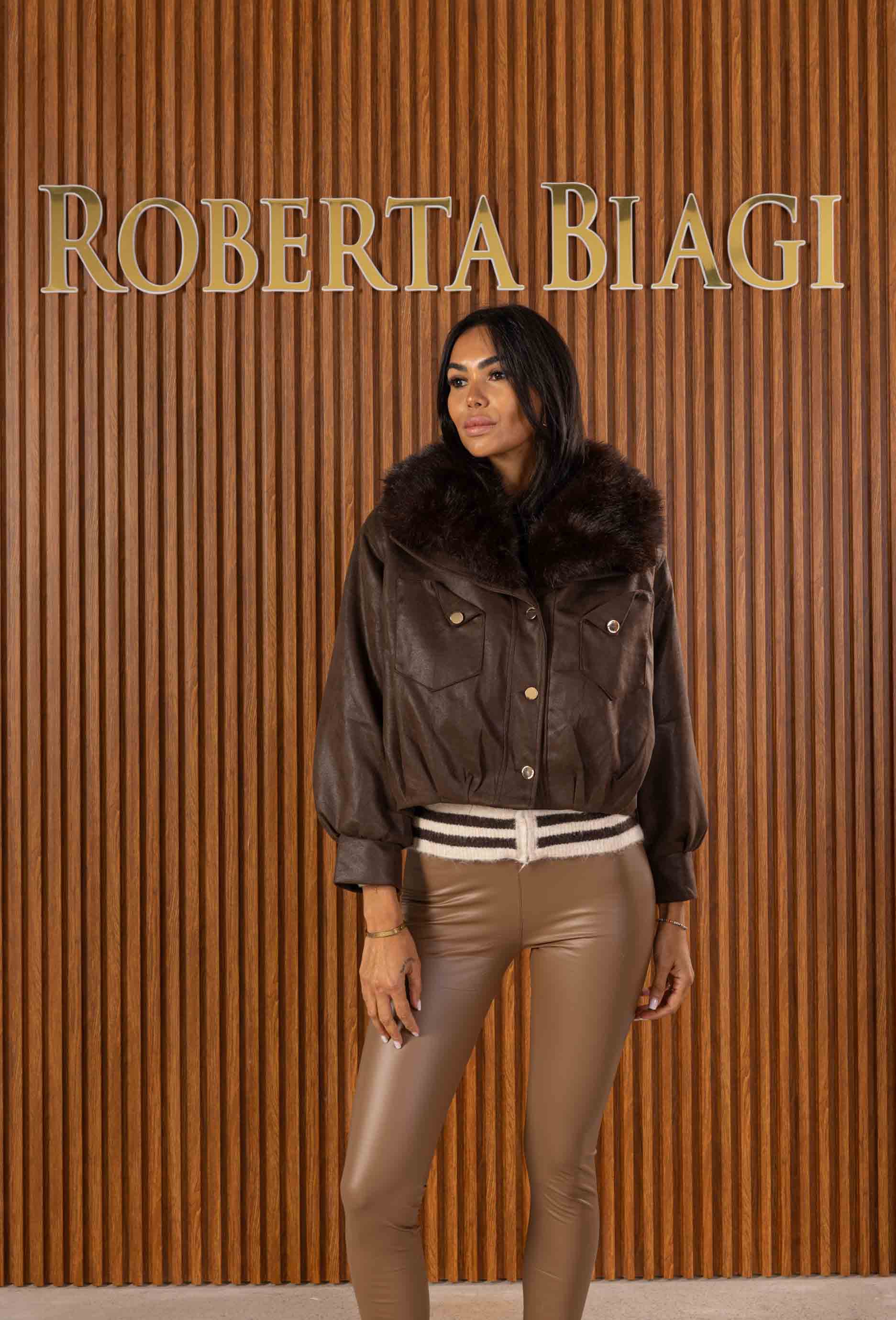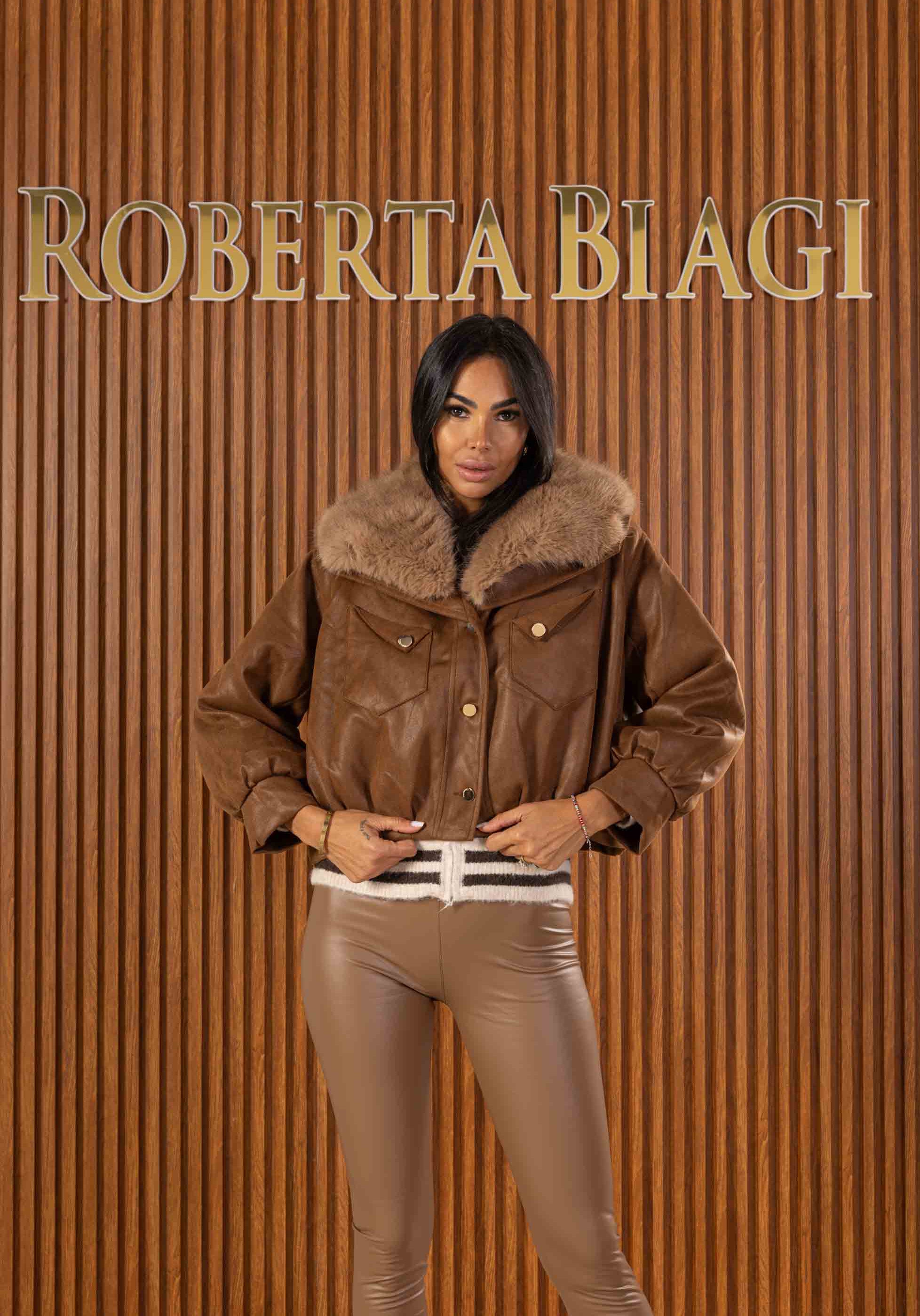 BOMBER ECOCAMOSCIO CON COLLO IN ECOPELLICCIA E DETTAGLIO RB
