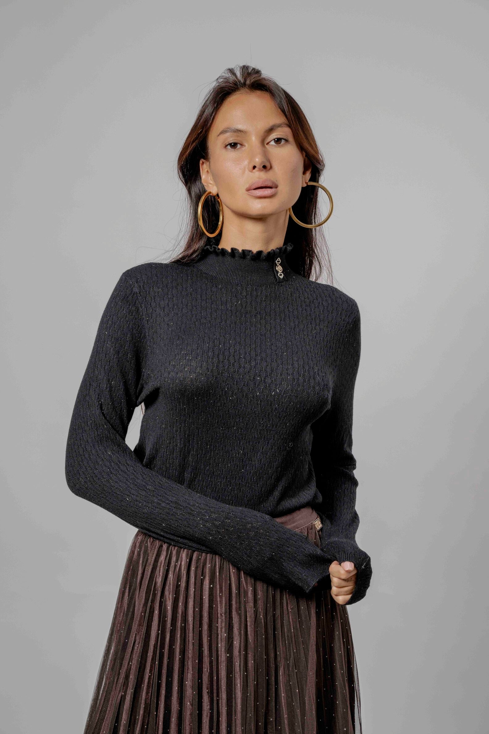 Product form MAG7632 MAGLIA IN LANA CON COLLETTO ROUCHES руб5.811,73 Nero / UNICA Panna / UNICA Colore Nero Moro Cipria Taupe Panna TAGLIA UNICA Quantity Add to cart Size Runs small True to size Runs large
