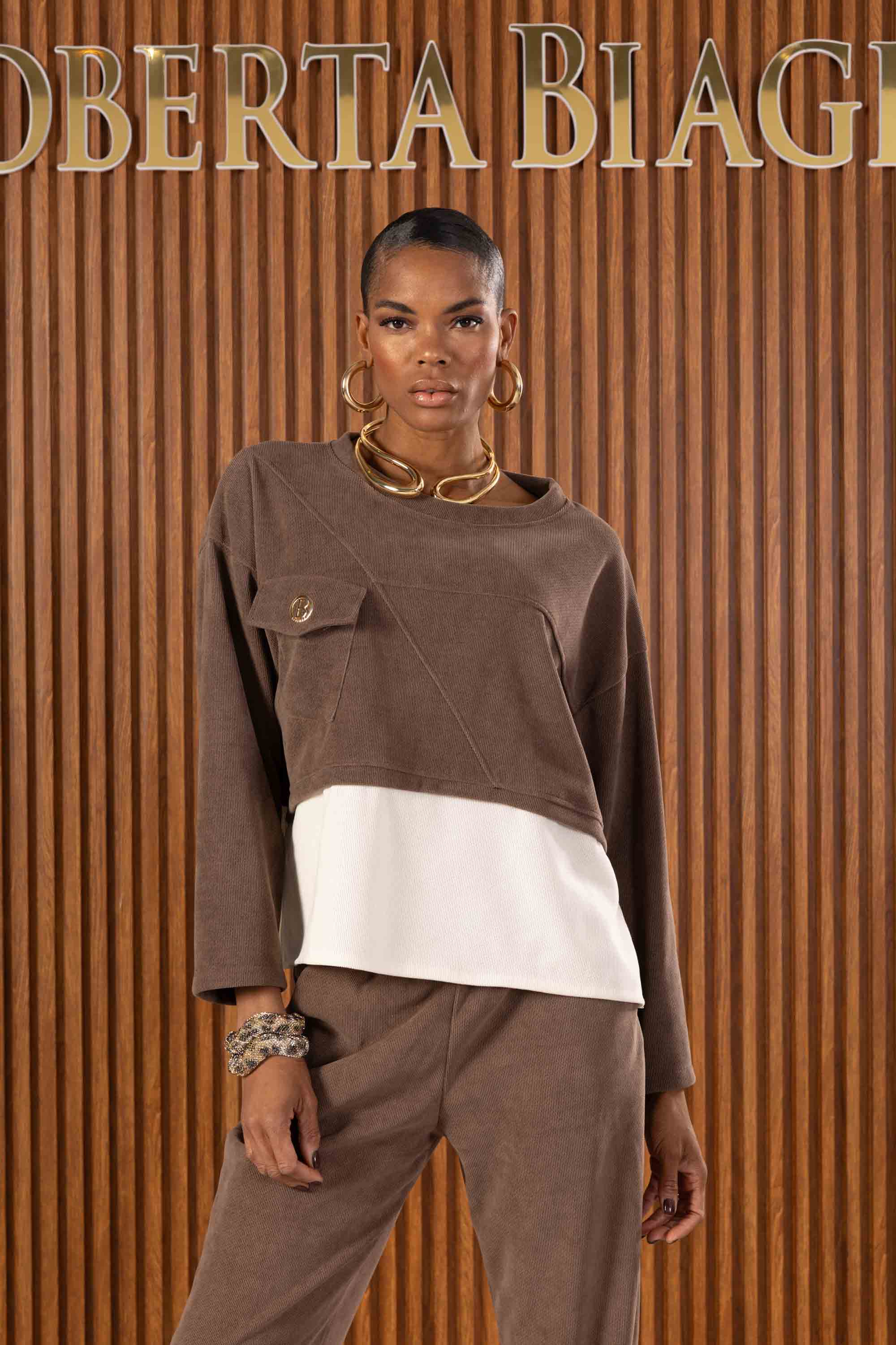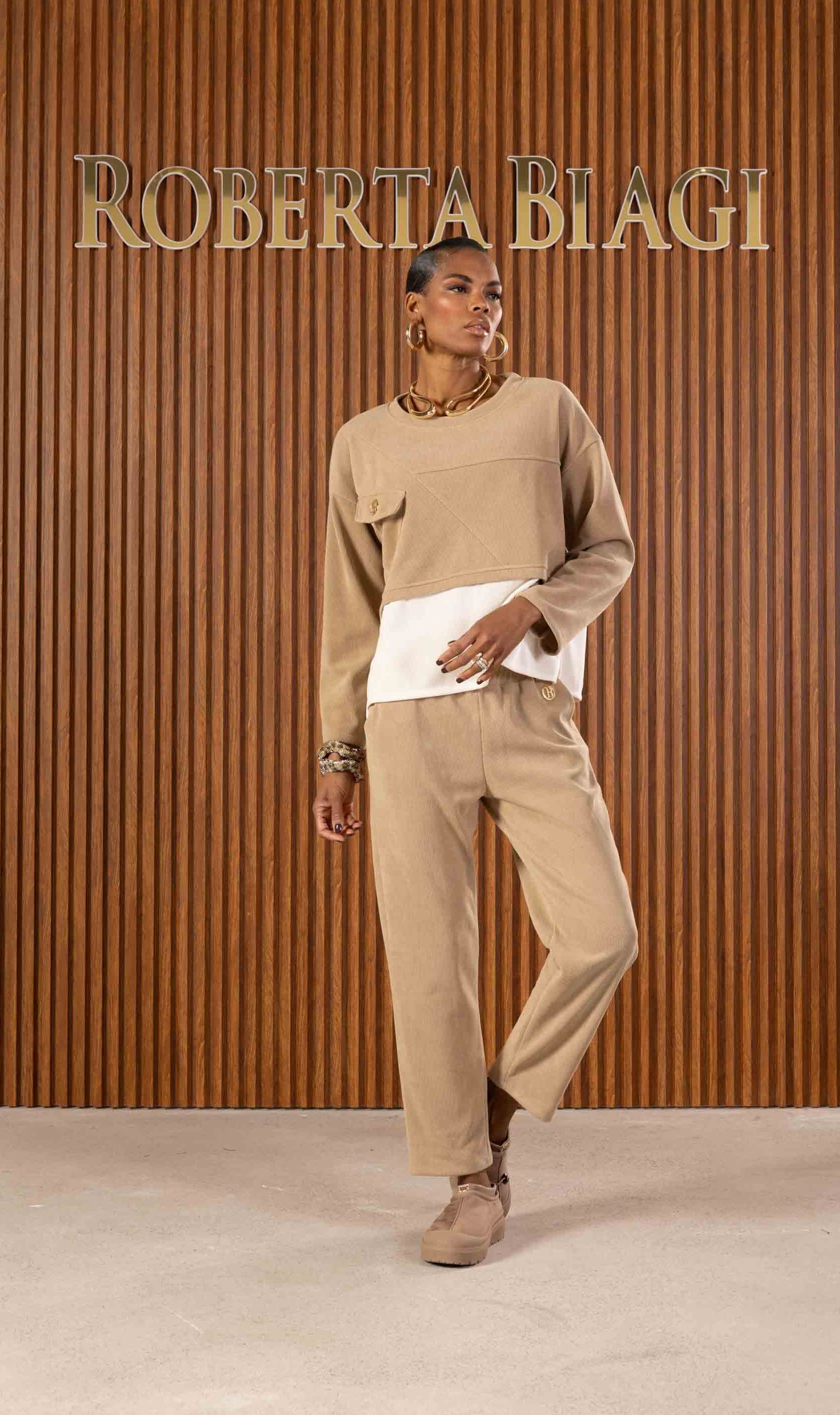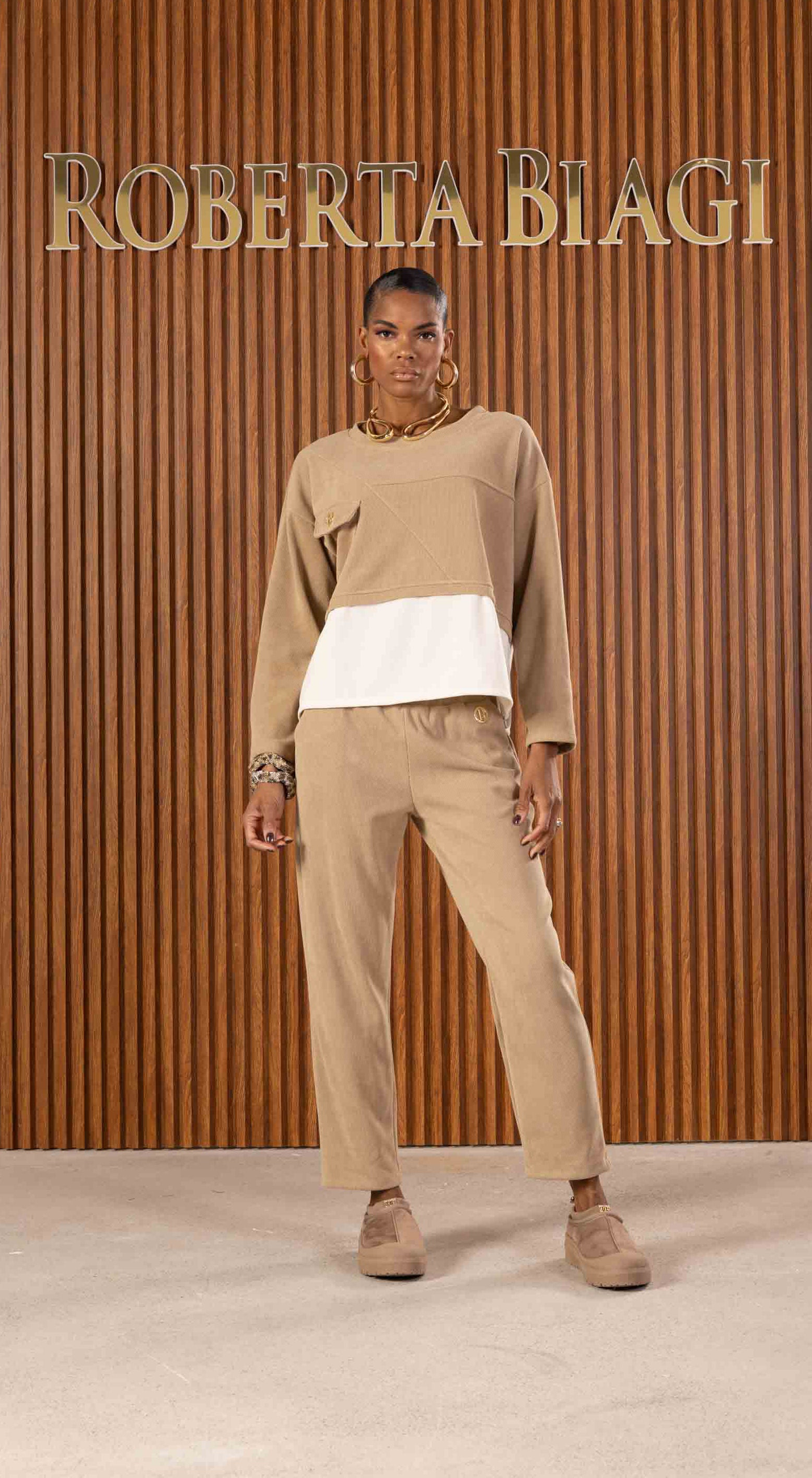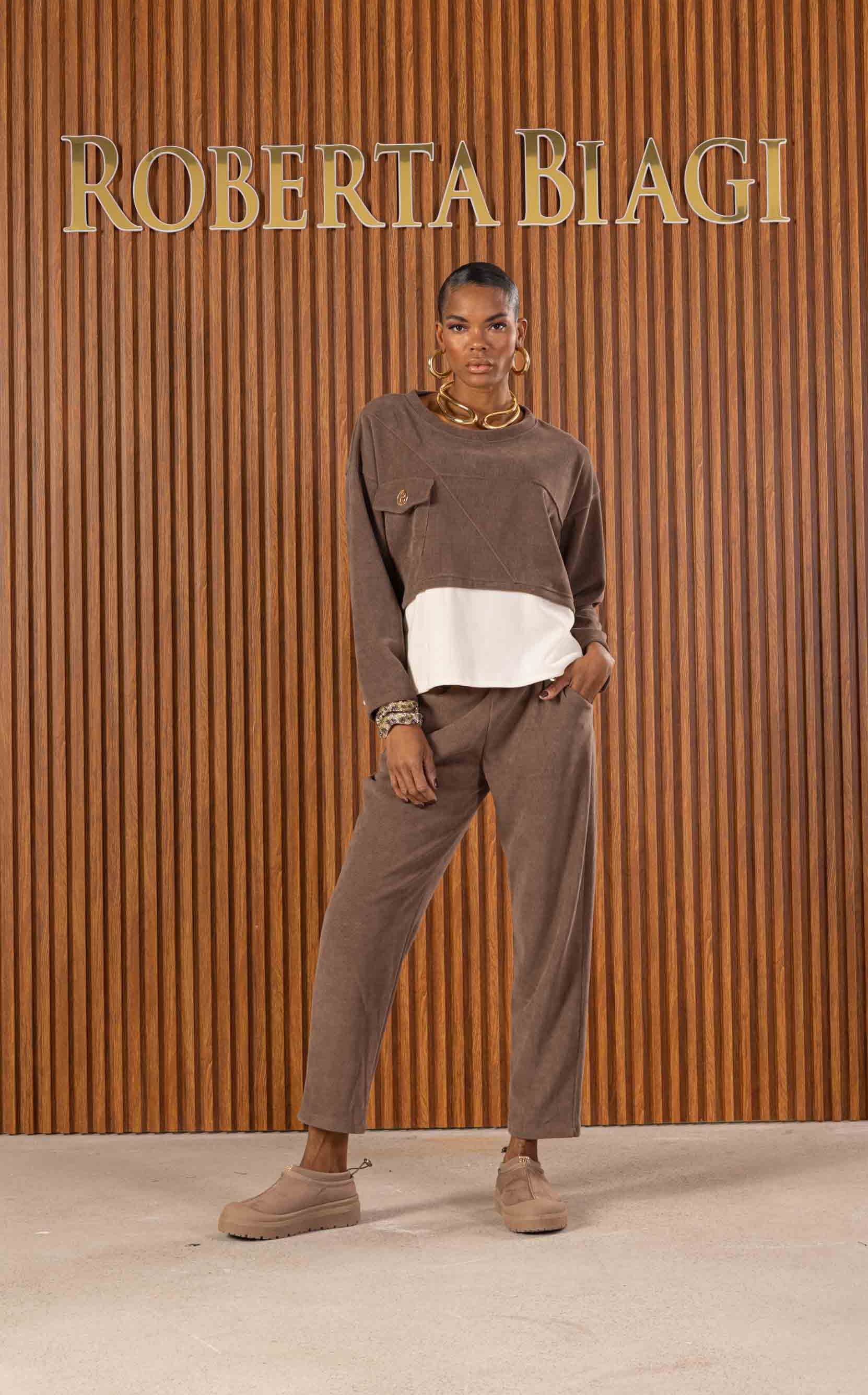 COMPLETO IN VISCOSA VELLUTO CON DETTAGLIO RB SU TASCA