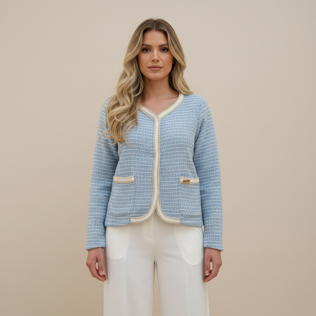 Product form GIA1120 GIACCA IN TWEED GIROCOLLO 50%COTONE 40%POLIESTERE 10%ELASTAN €79,00 SKU: GIA1120 Panna / UNICA Rosa / UNICA Azzurro / UNICA ColorAzzurro TAGLIA UNICA Quantity Add to cart Size Runs small True to size Runs large