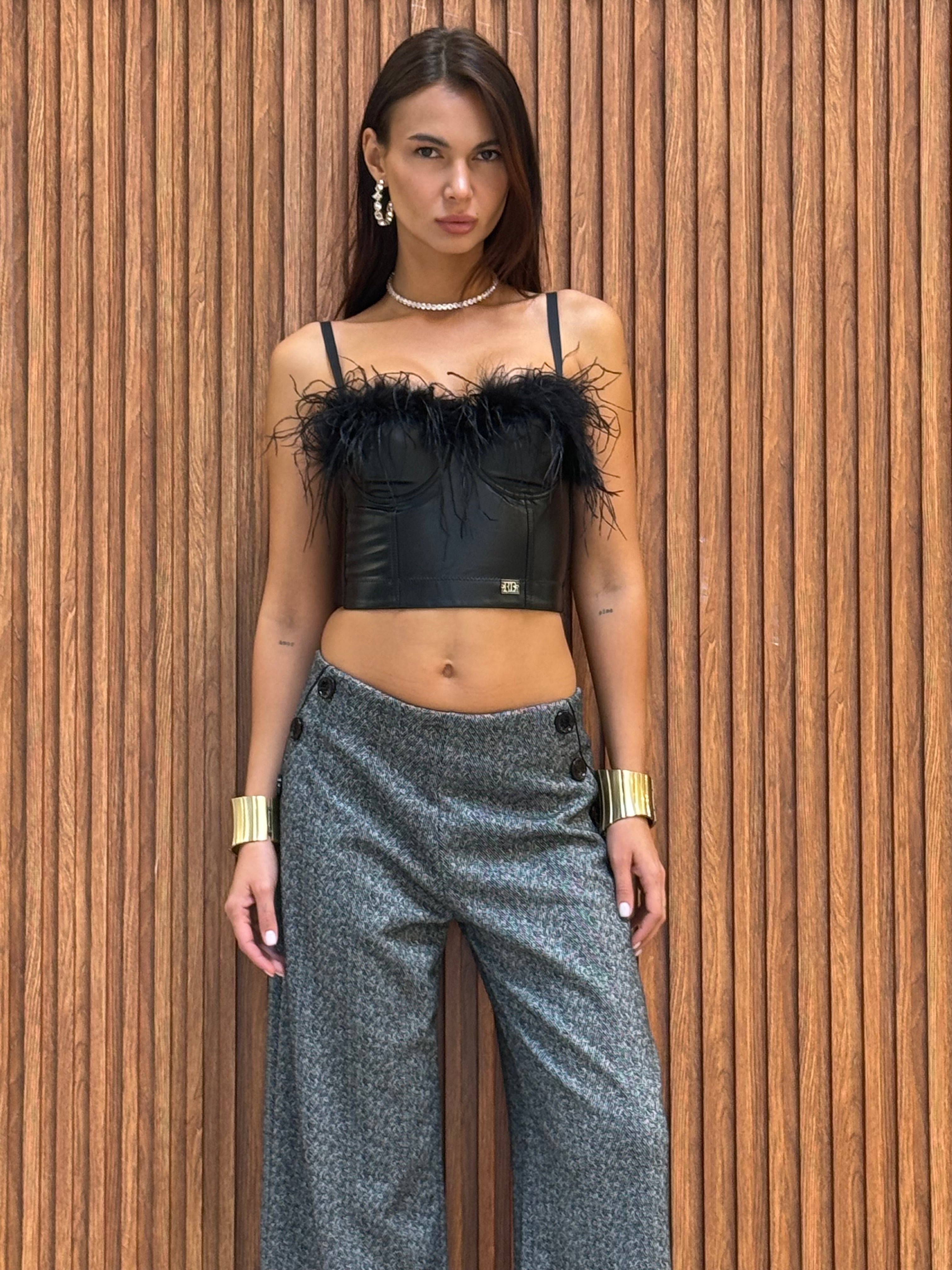 Forma del prodotto TOP0581 TOP IN ECOPELLE CON PIUME $81.18 SKU: TOP0581 Nero / XS Nero / S Nero / M Nero / L ColorNero TAGLIA XS S M L Quantità Aggiungi al carrello Size Runs small True to size Runs large