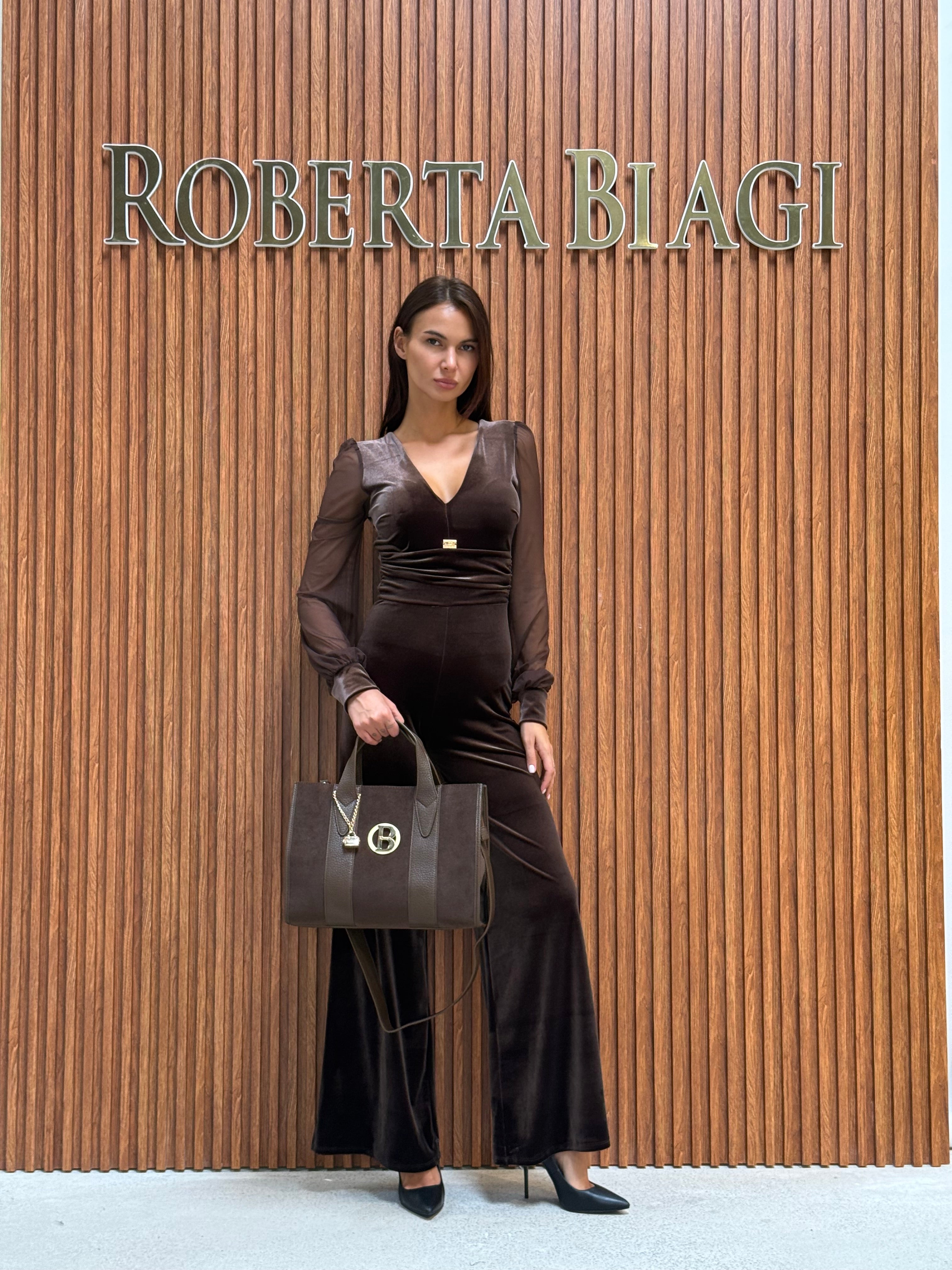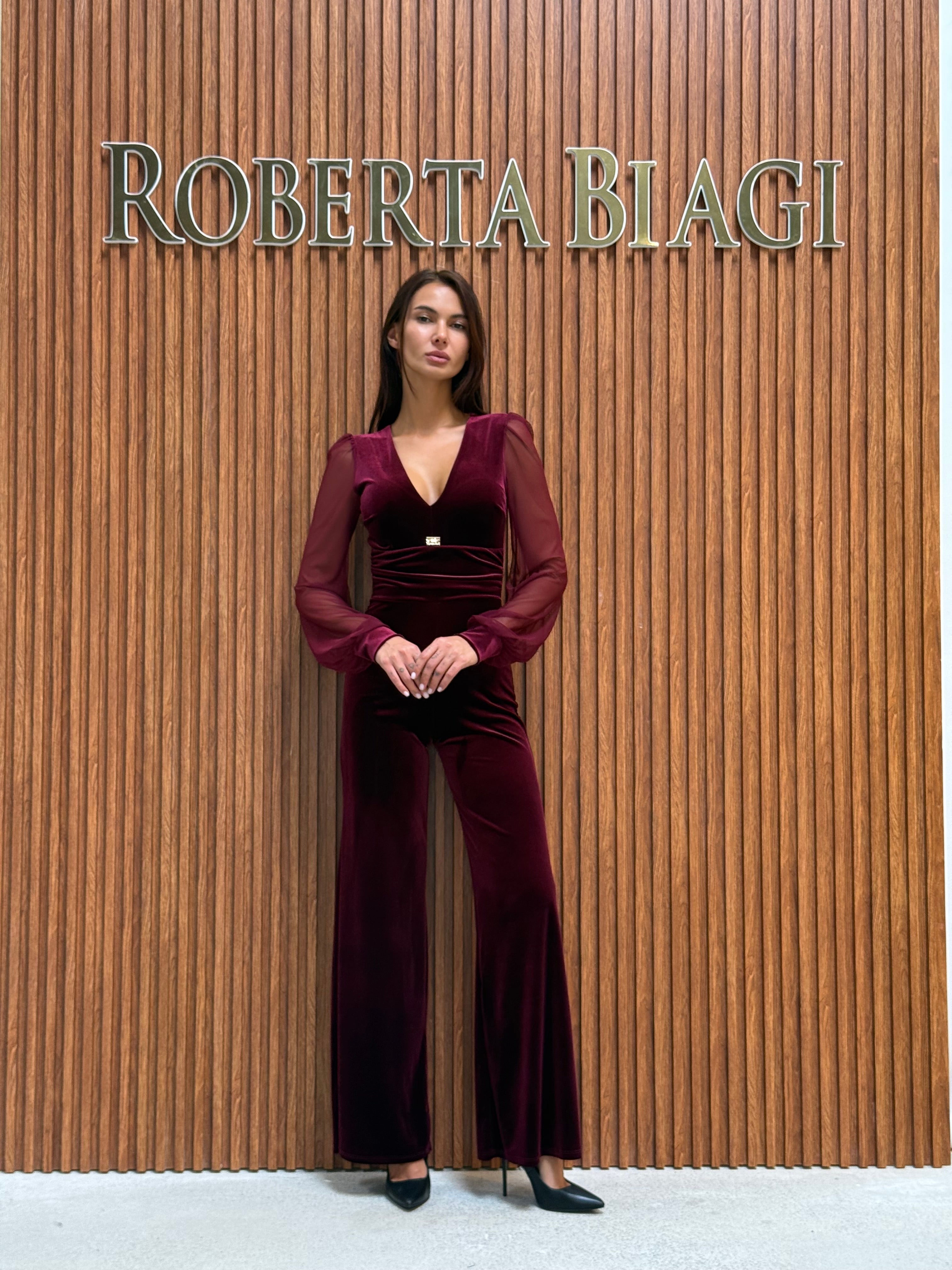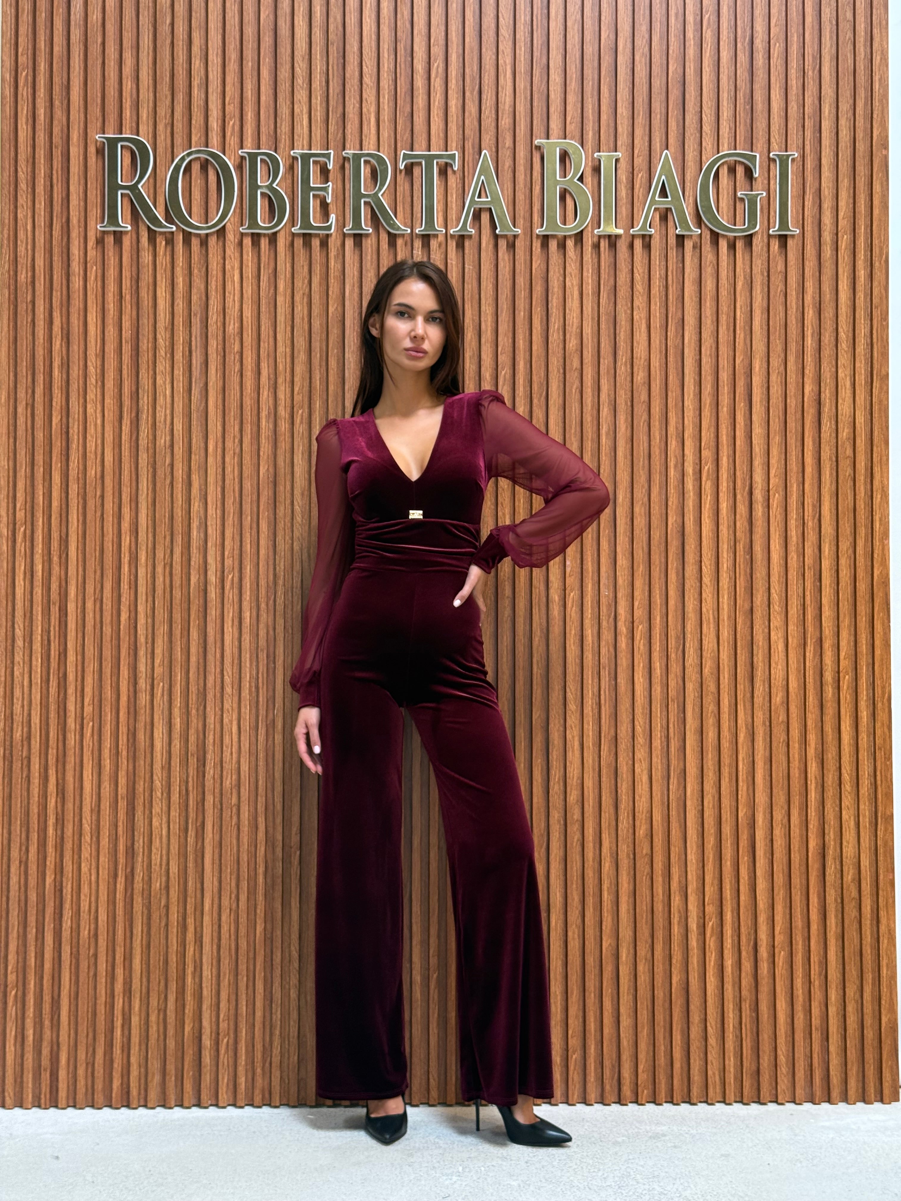 TUTA IN VELLUTO CON COPPE SCOLLO A V MANICA VELATA E DETTAGLIO RB