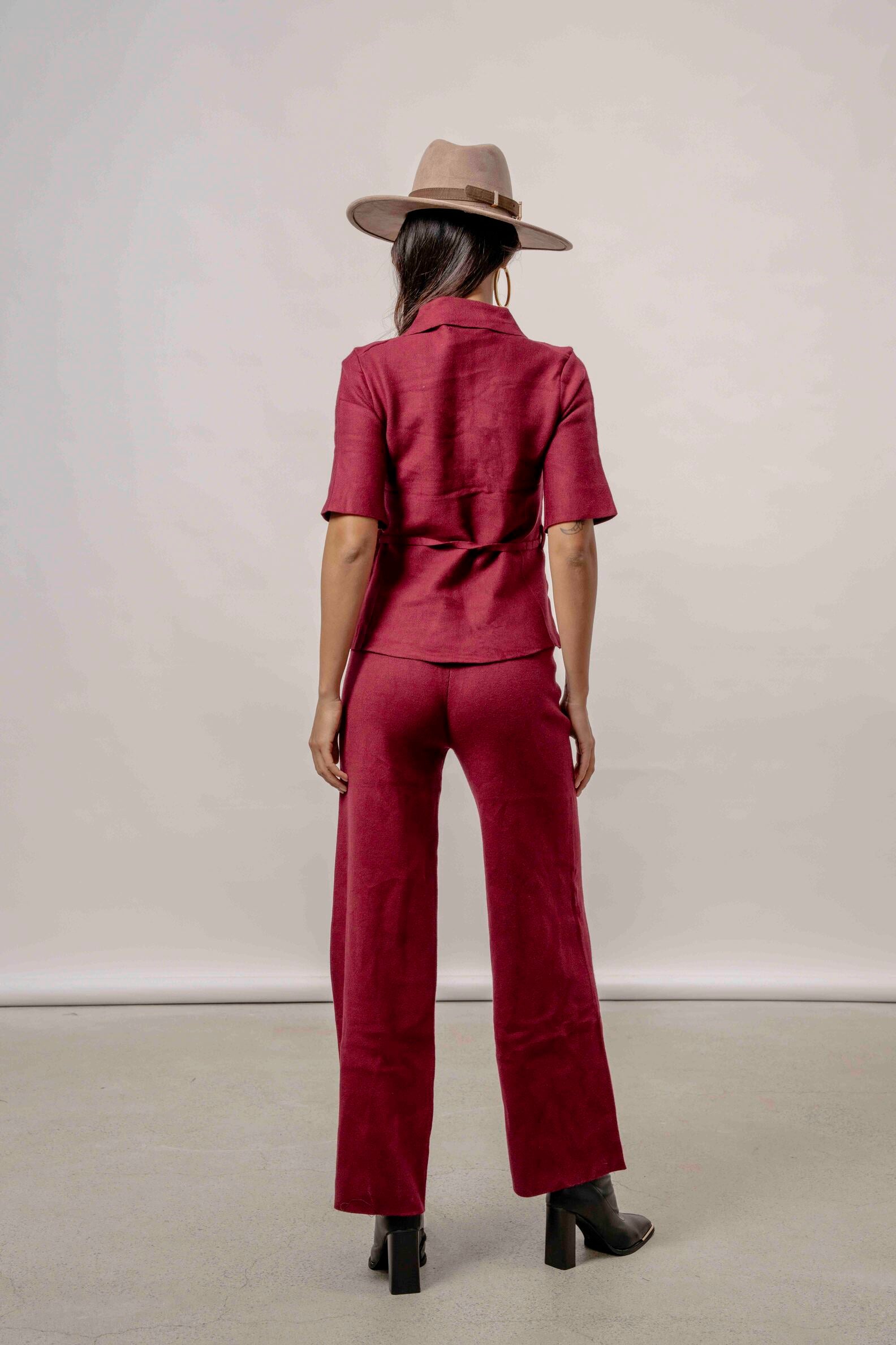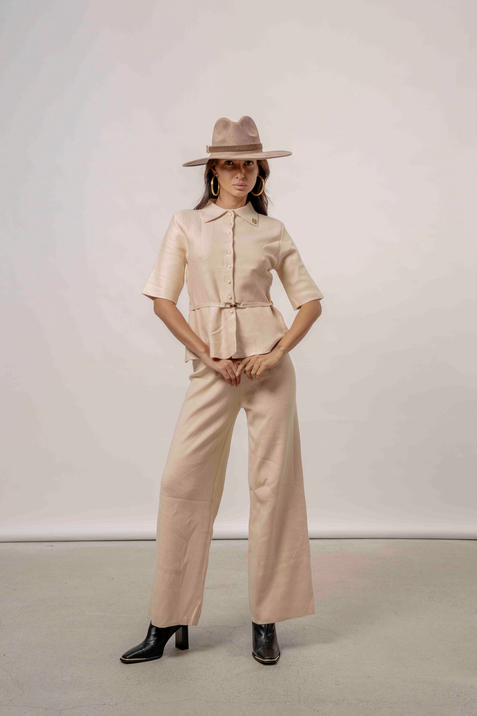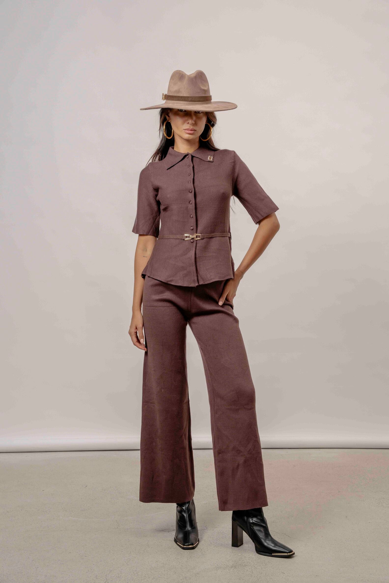 COMPLETO IN LANA CON MAGLIA POLO E BOTTONCINI TESSITI