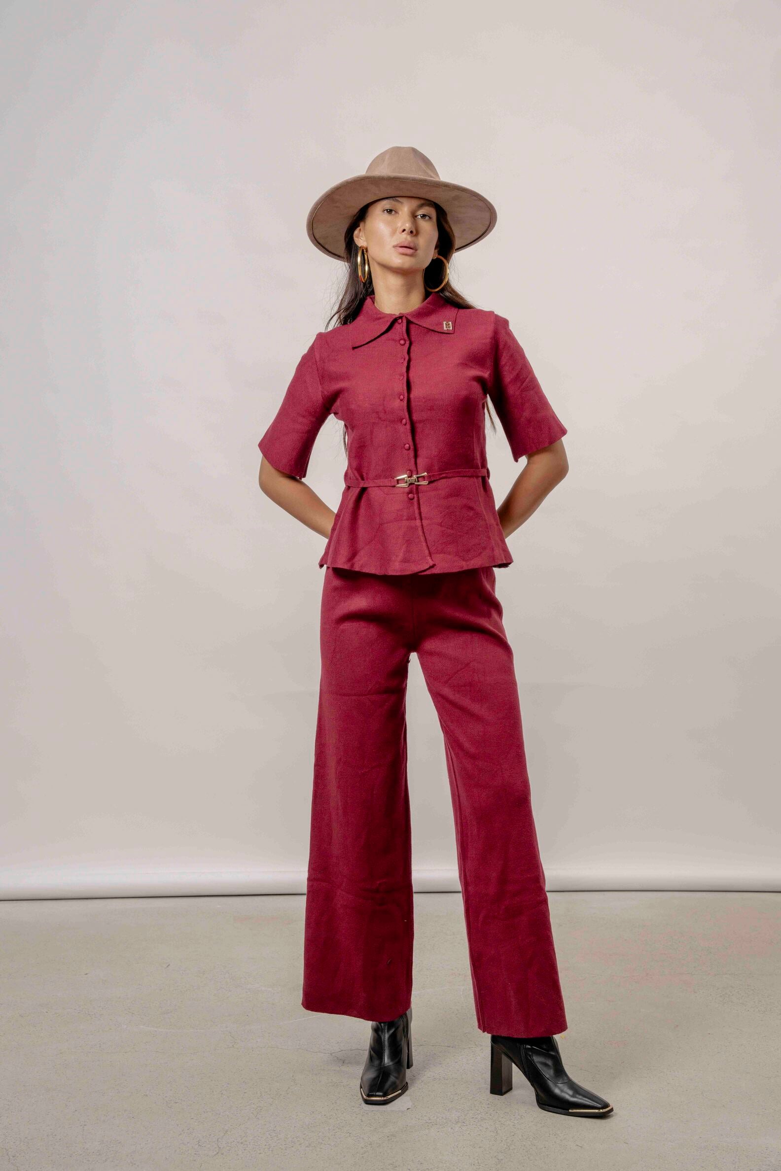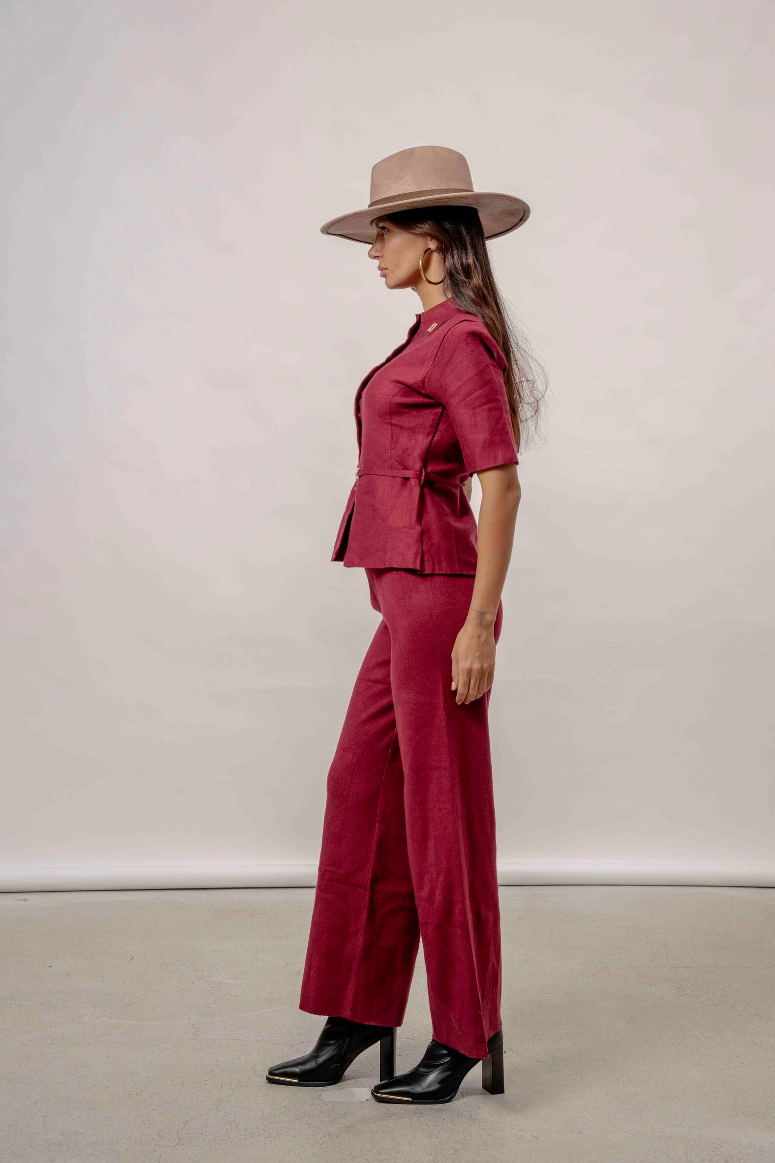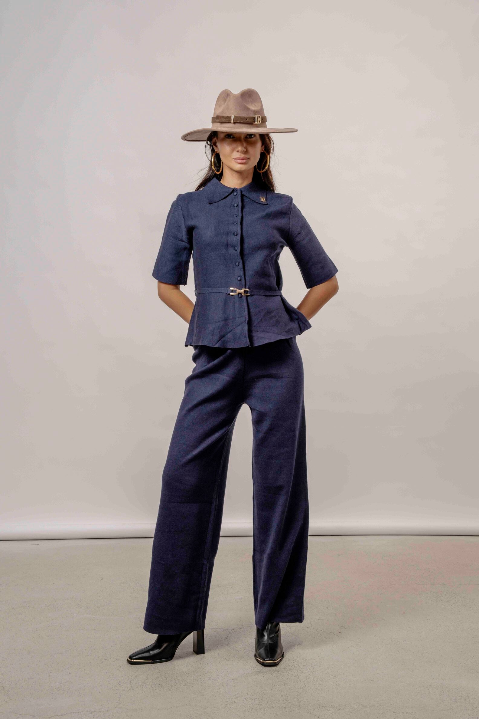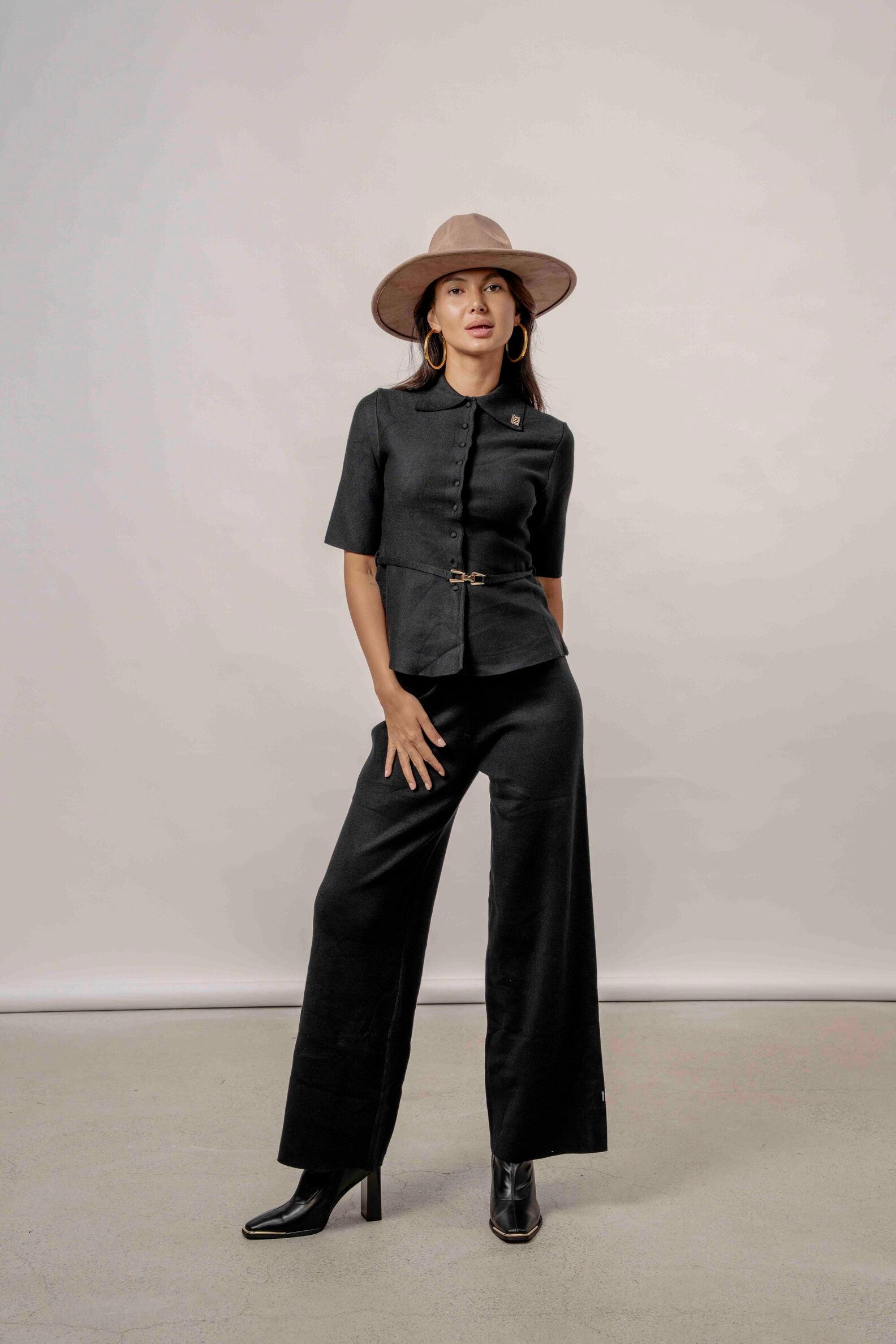 COMPLETO IN LANA CON MAGLIA POLO E BOTTONCINI TESSITI