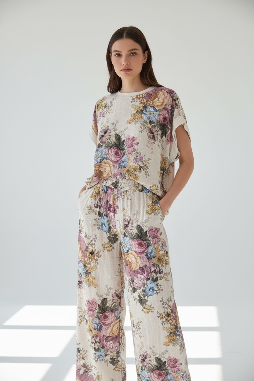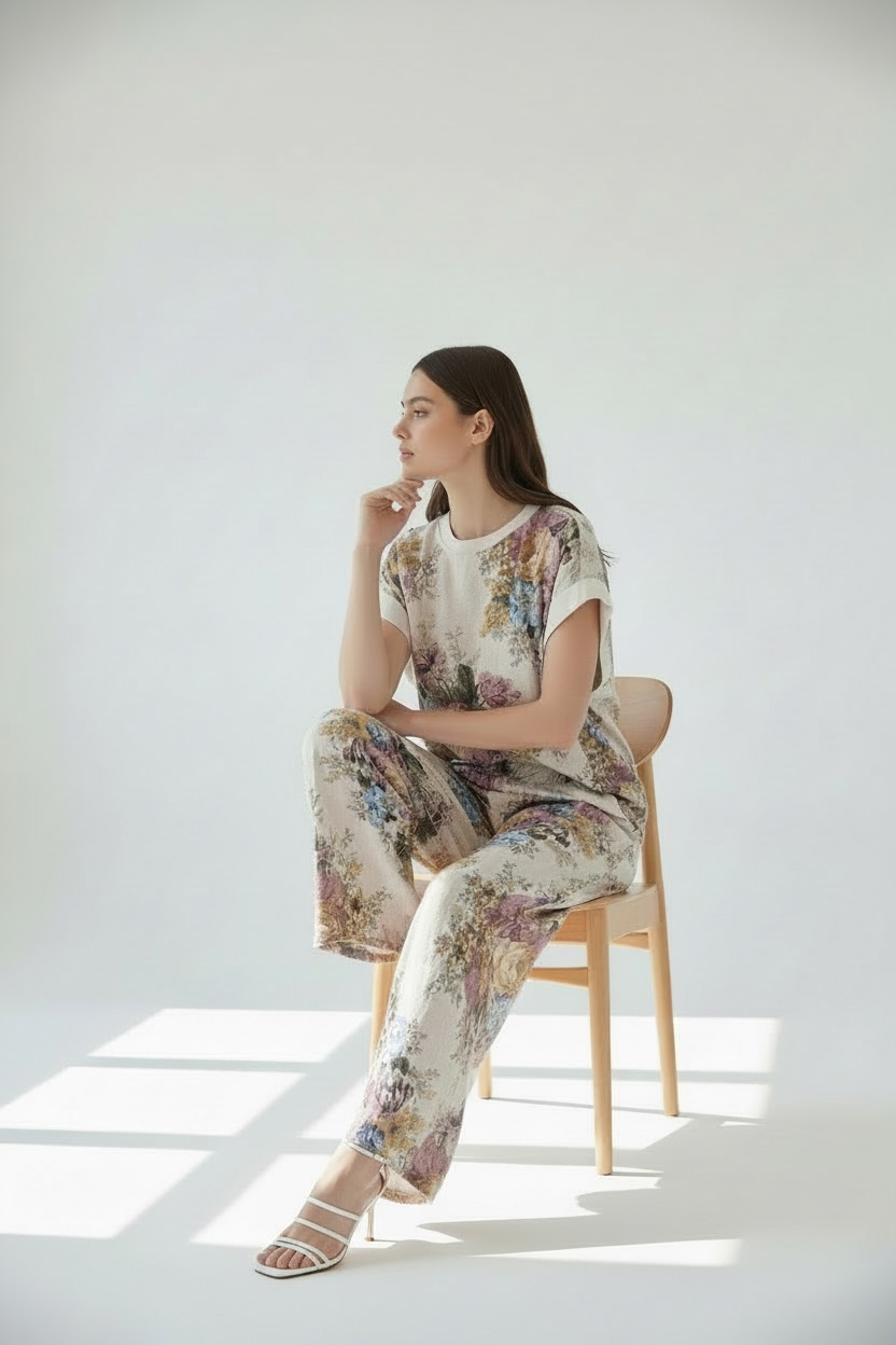 Forma del prodotto COM1090 COMPLETO CON MAGLIA A FIORI IN VISCOSA 100%VISCOSA €99,00 SKU: COM1090 Quantità Esaurito Size Runs small True to size Runs large