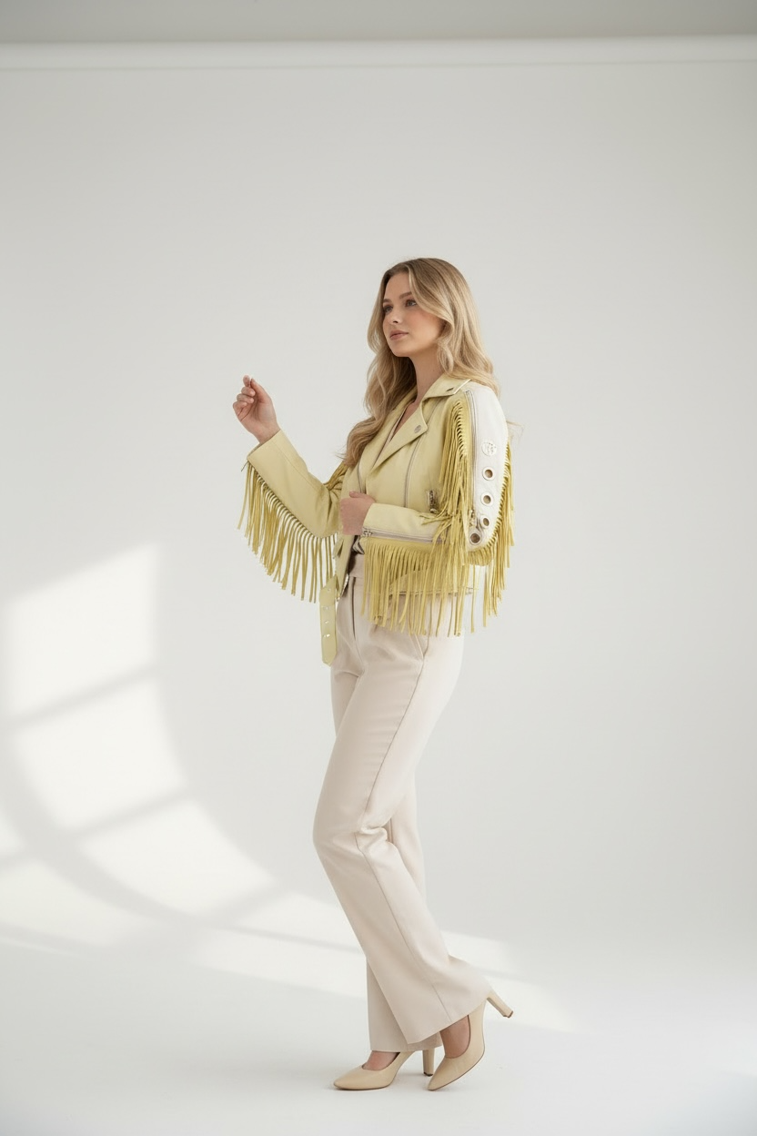 Forma del prodotto GIA1122 GIACCA IN VERA PELLE CON ZIP E FRANGE SU MANICA 100% VERA PELLE €399,00 SKU: GIA1122 Nero/panna / L Azzurro / S Azzurro / M Azzurro / L Giallo / S Giallo / M Giallo / L Rosa / S Rosa / M Rosa / L ColorAzzurro TAGLIA S M L Quantità Aggiungi al carrello Size Runs small True to size Runs large