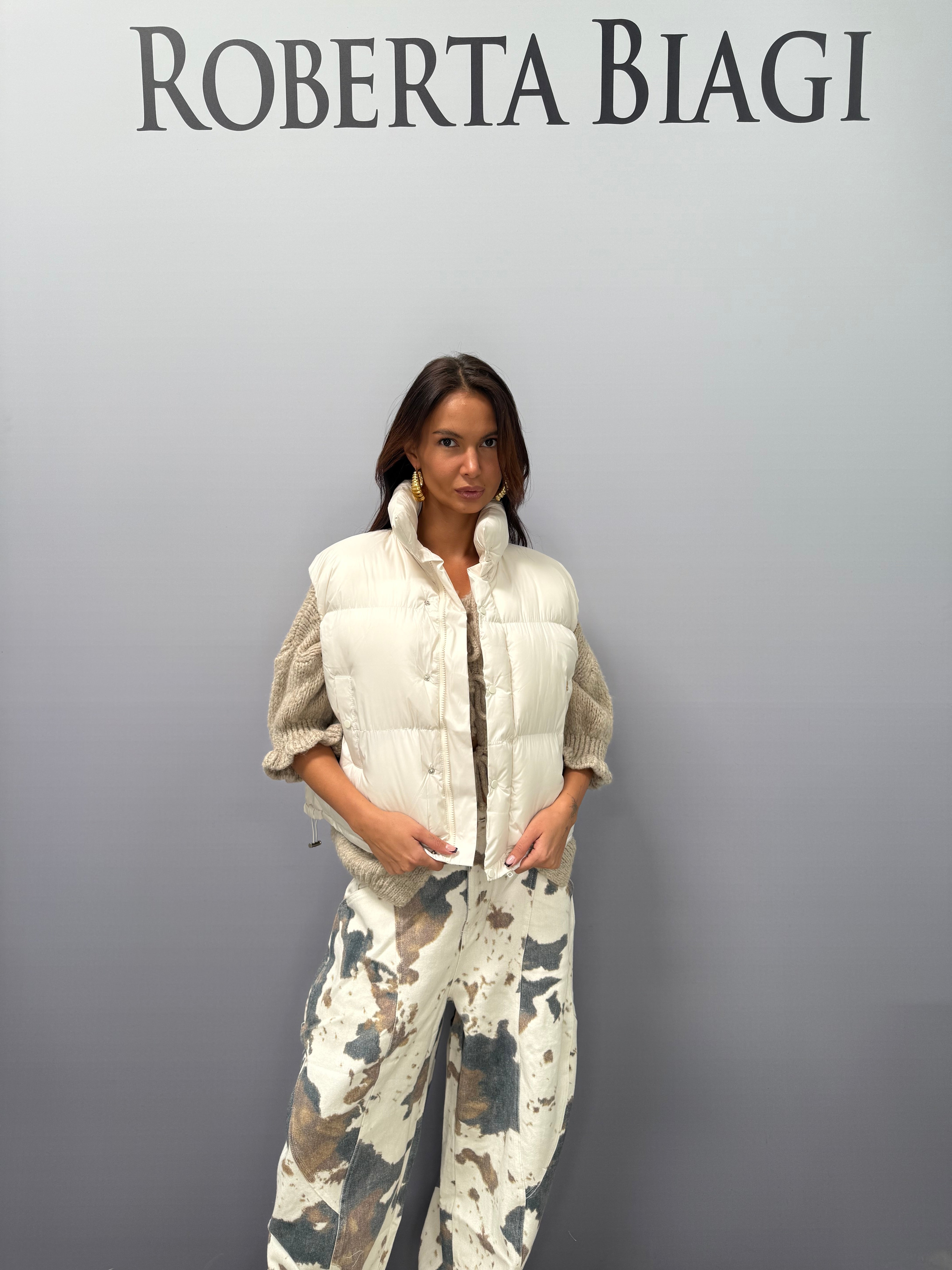 Forma del prodotto GIL0340 BOMBER GILET CORTO CON ELASTICO IN VITA €129,00 SKU: GIL0340 Quantità Aggiungi al carrello Size Runs small True to size Runs large