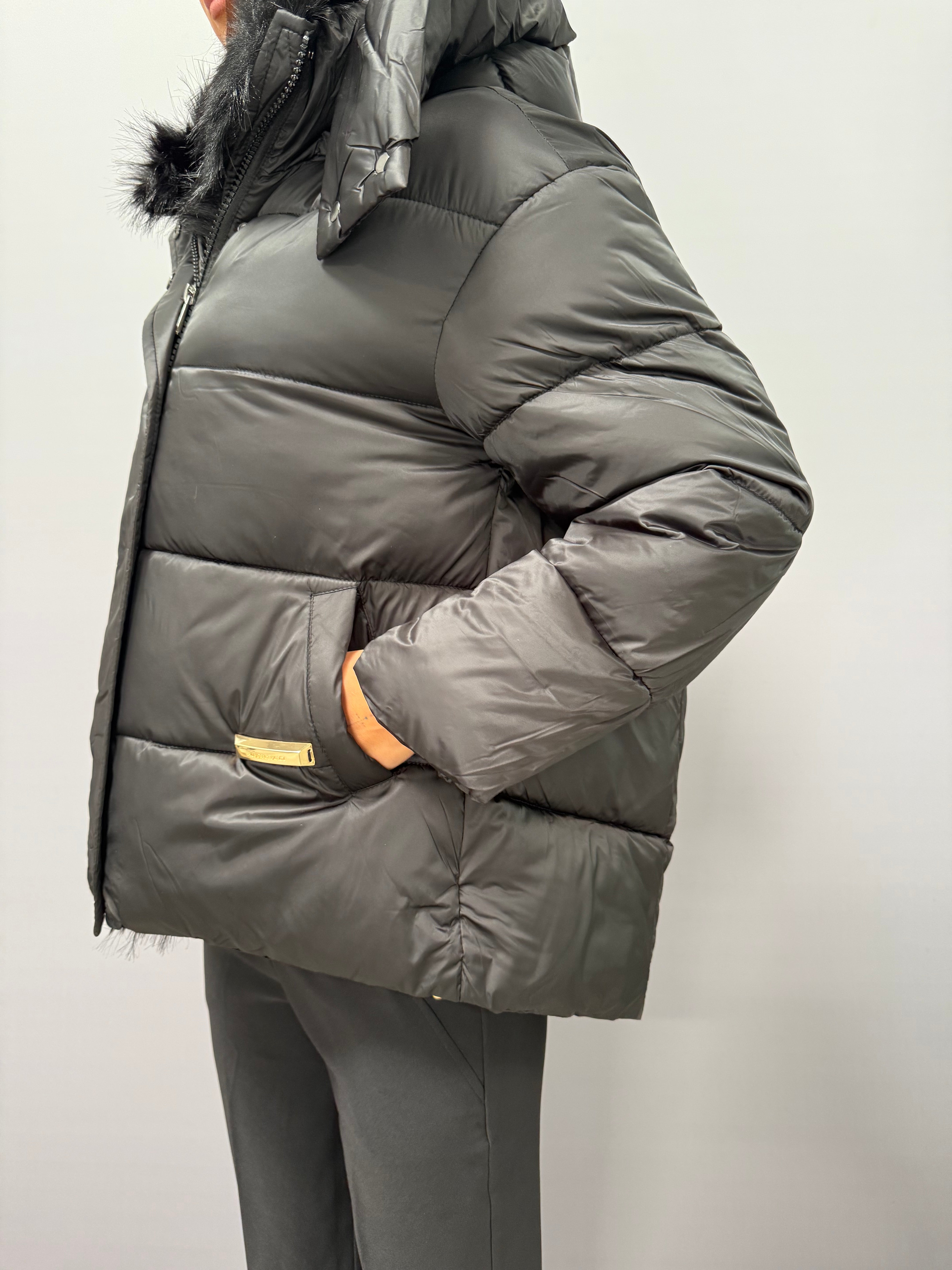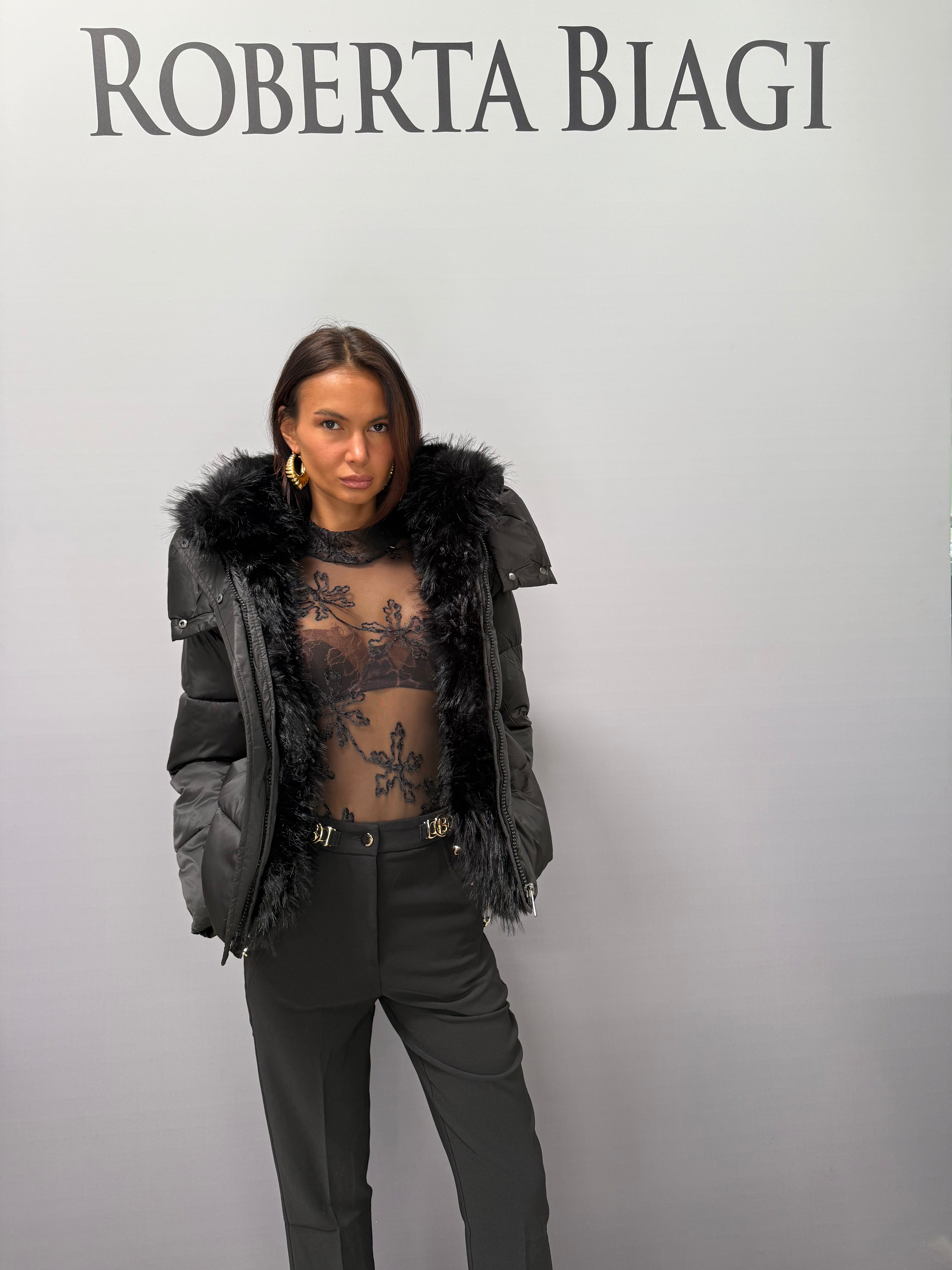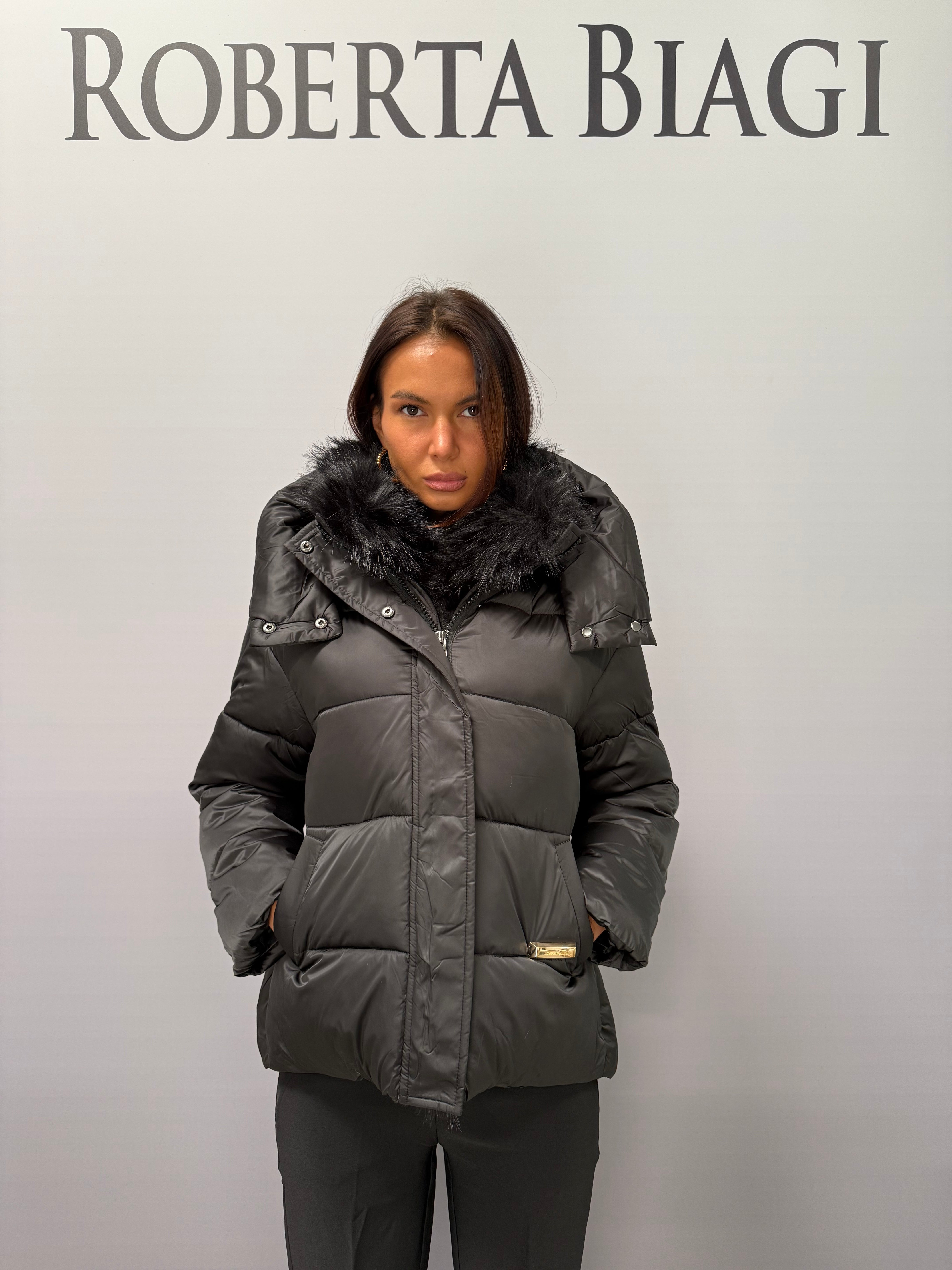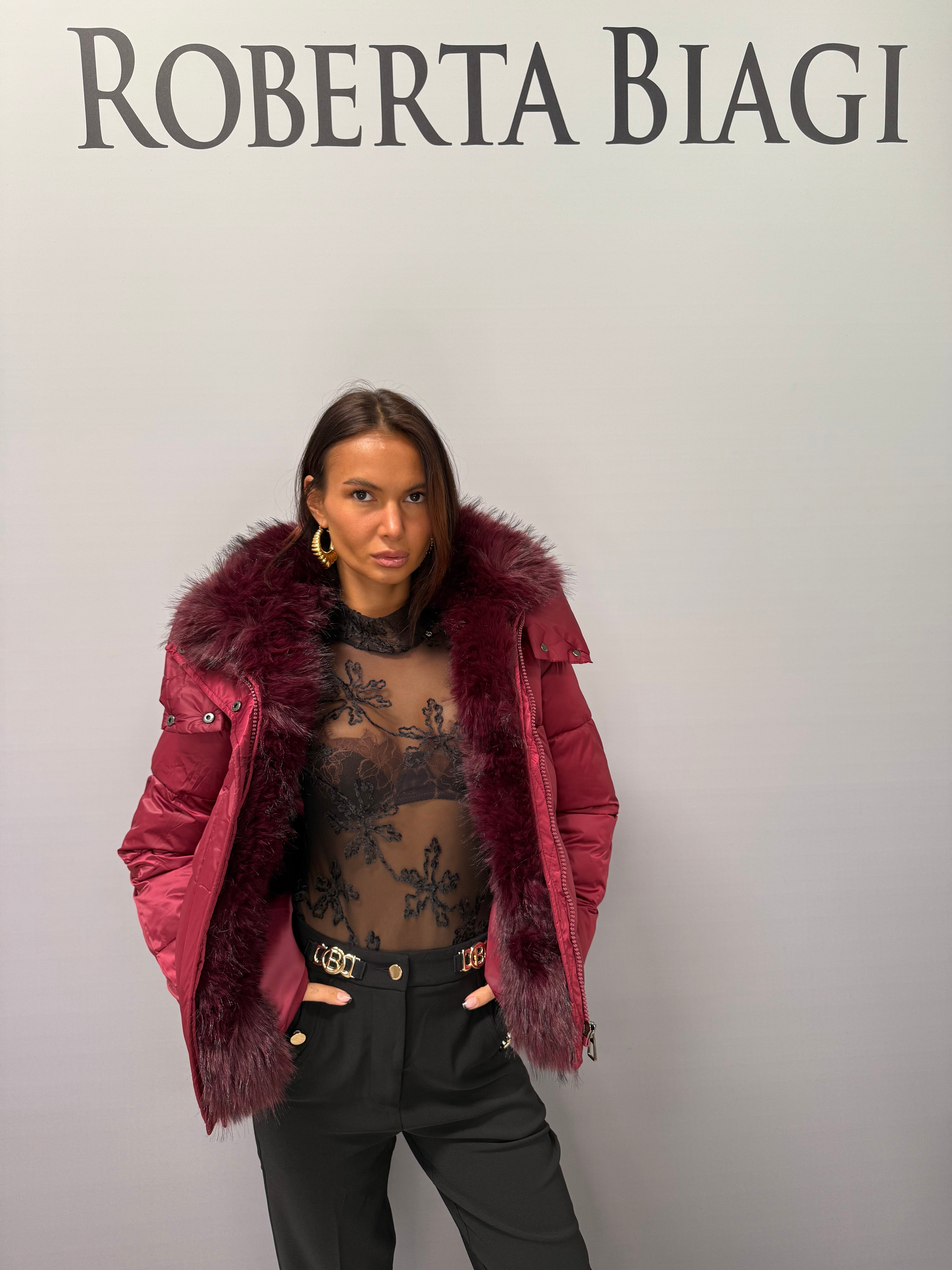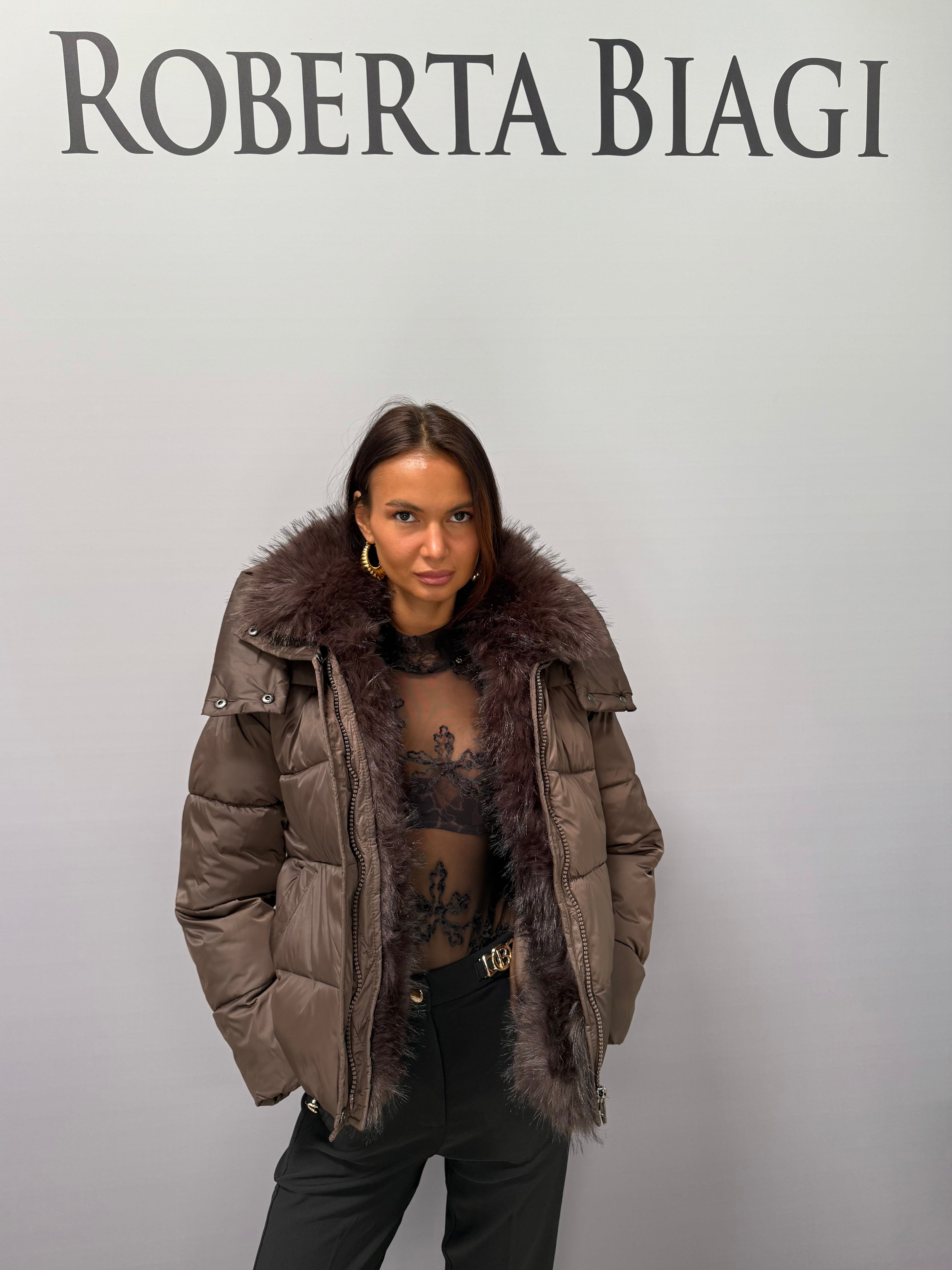 PIUMINO CORTO OVER CON COLLO IN ECOPELLICCIA PIU DETTAGLIO ROBERTA BIAGI