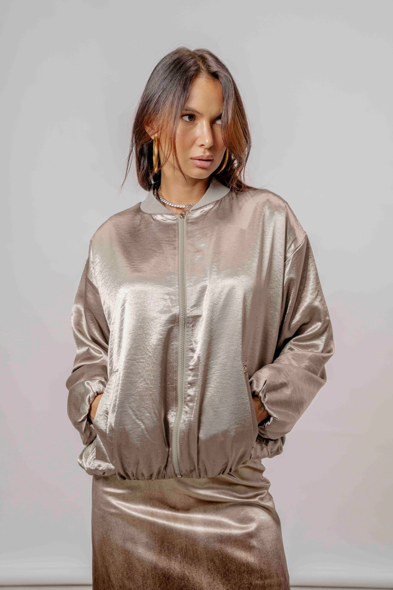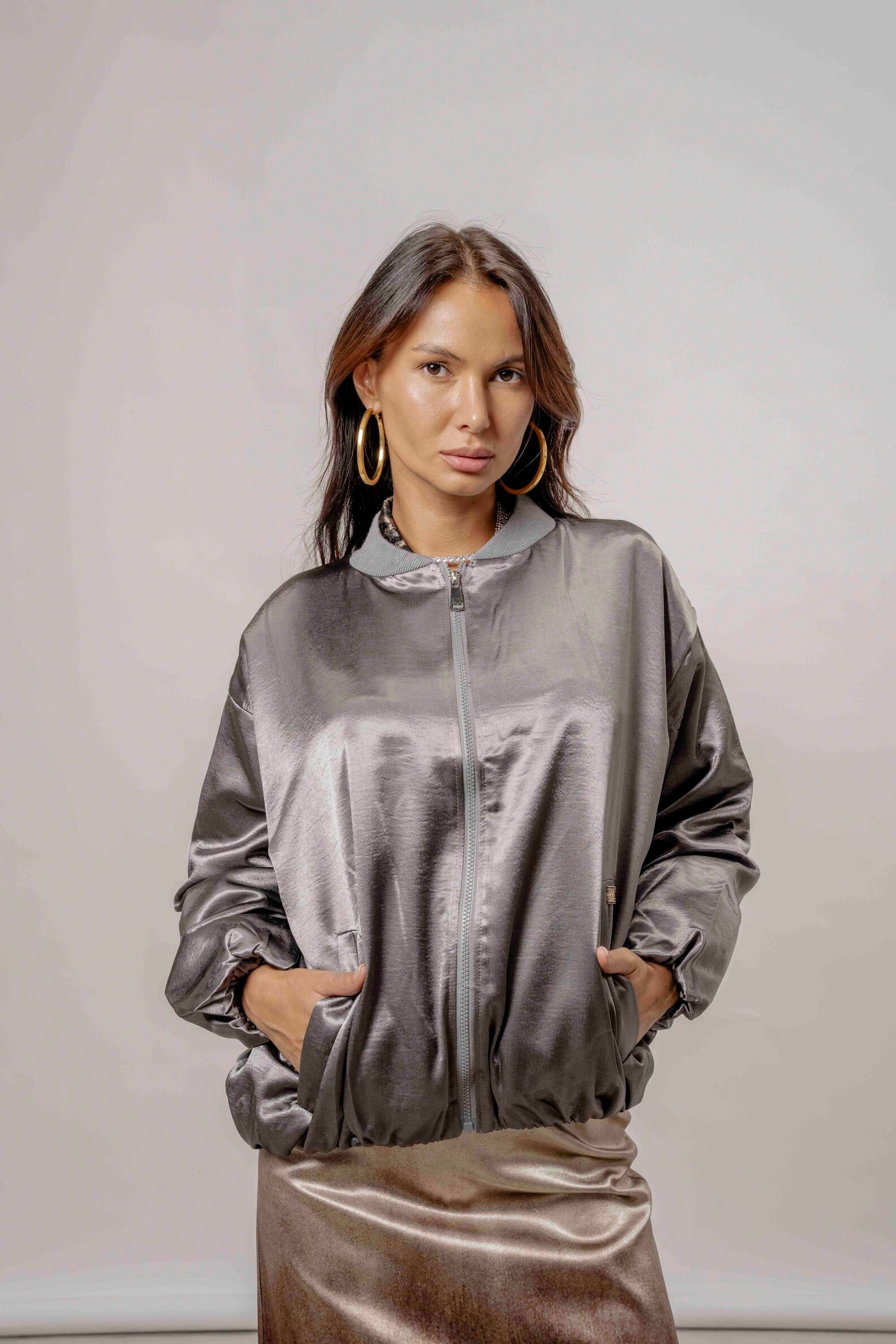 Forma del prodotto GIU1651 GIUBBINO BOMBER IN SATIN €99,00 Nero / S/M Nero / M/L Moro / S/M Taupe / S/M Taupe / M/L Grigio / S/M Grigio / M/L Colore Nero Moro Taupe Grigio TAGLIA S/M M/L Quantità Aggiungi al carrello Size Runs small True to size Runs large