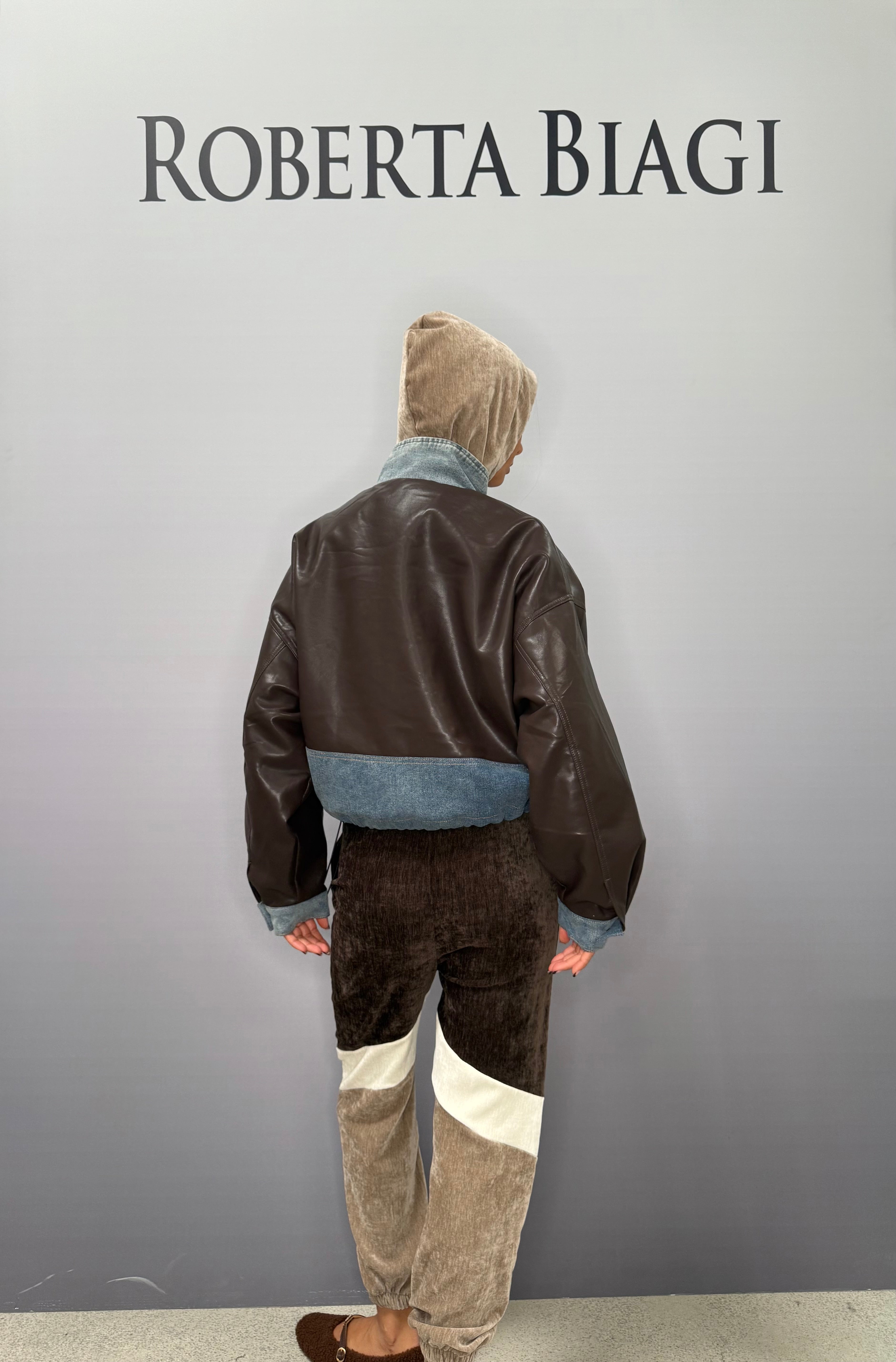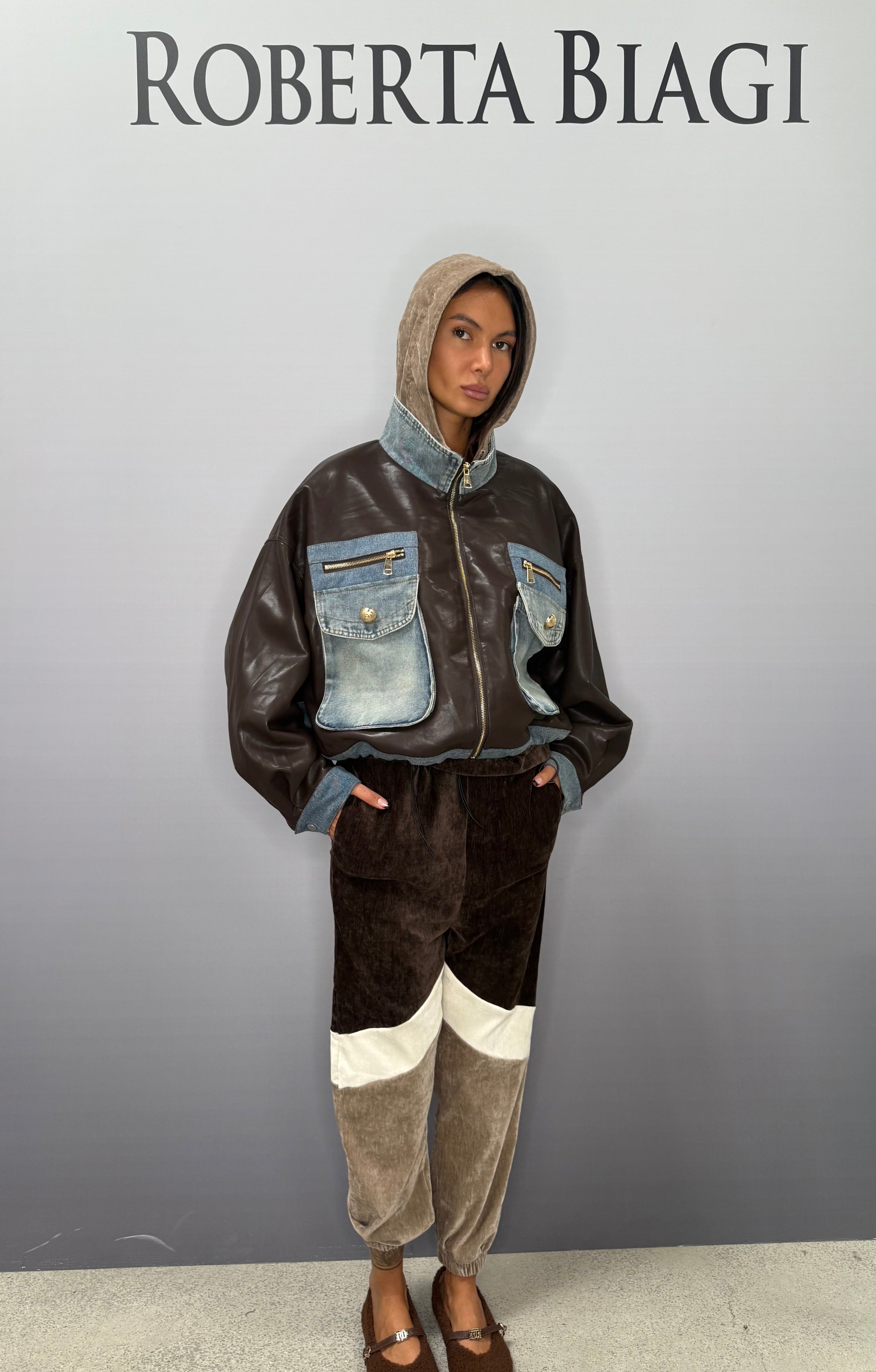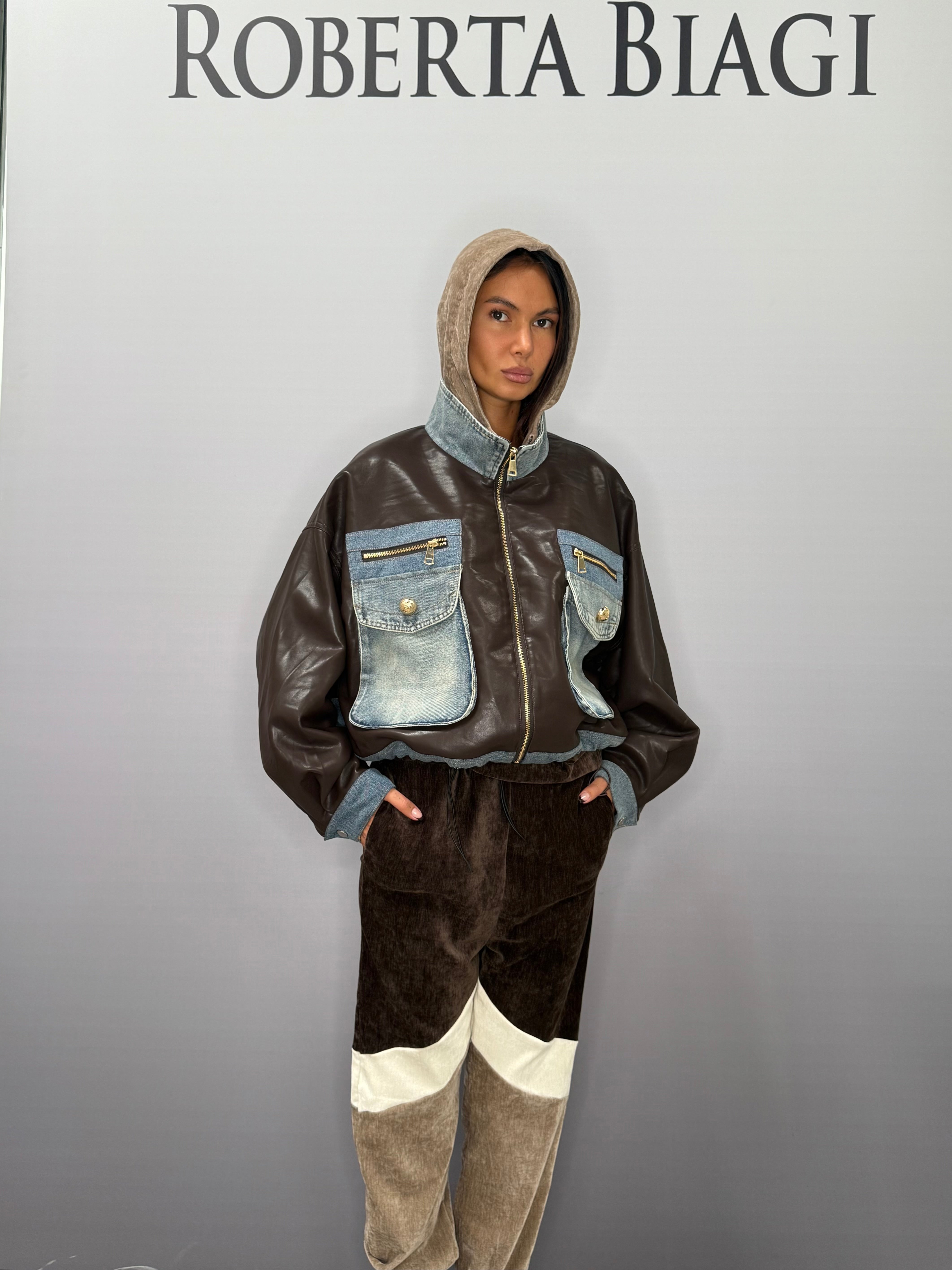 GIUBBINO ECOPELLE CON DETTAGLI DENIM E TASCHE SUL DAVANTI