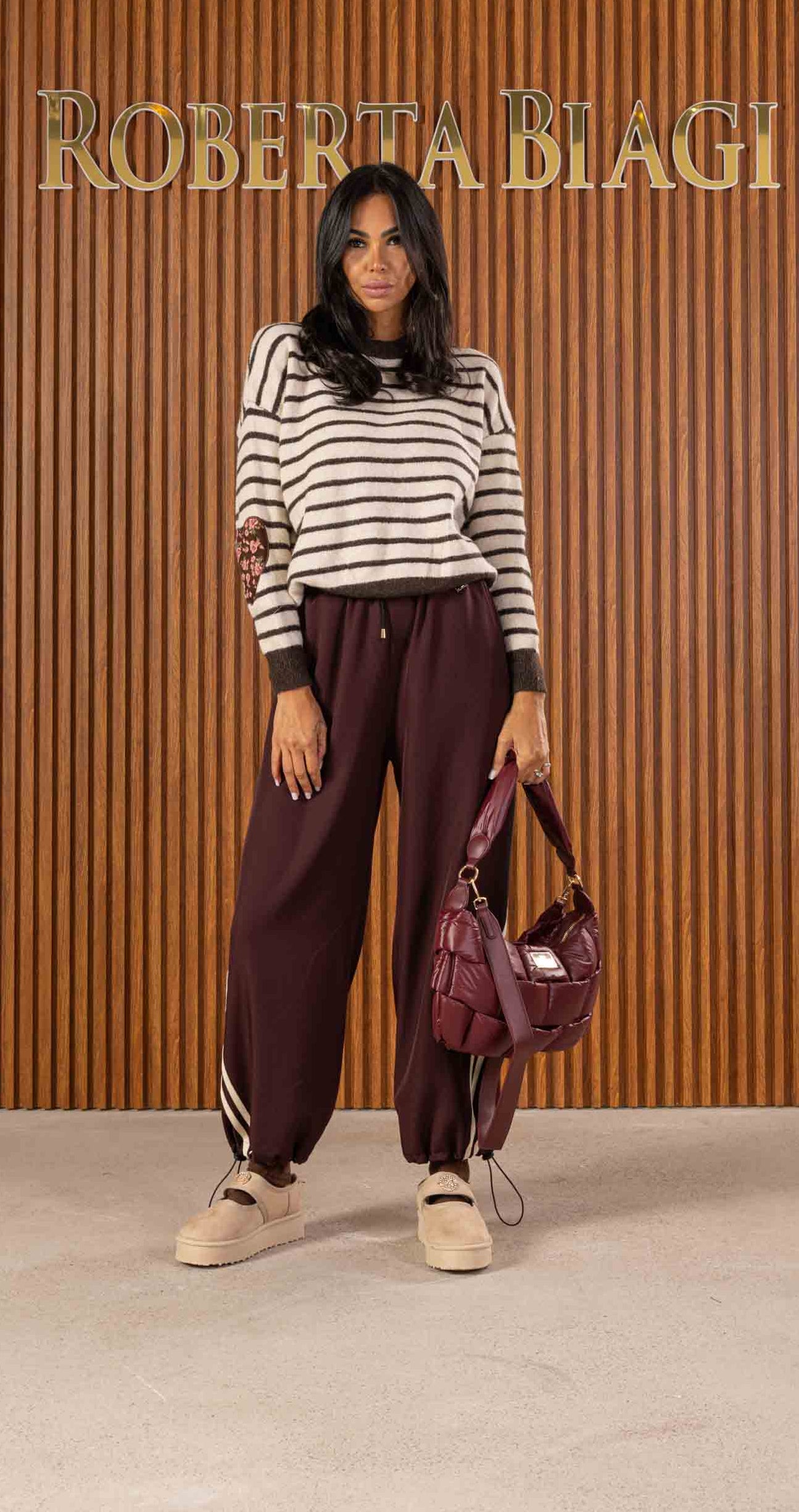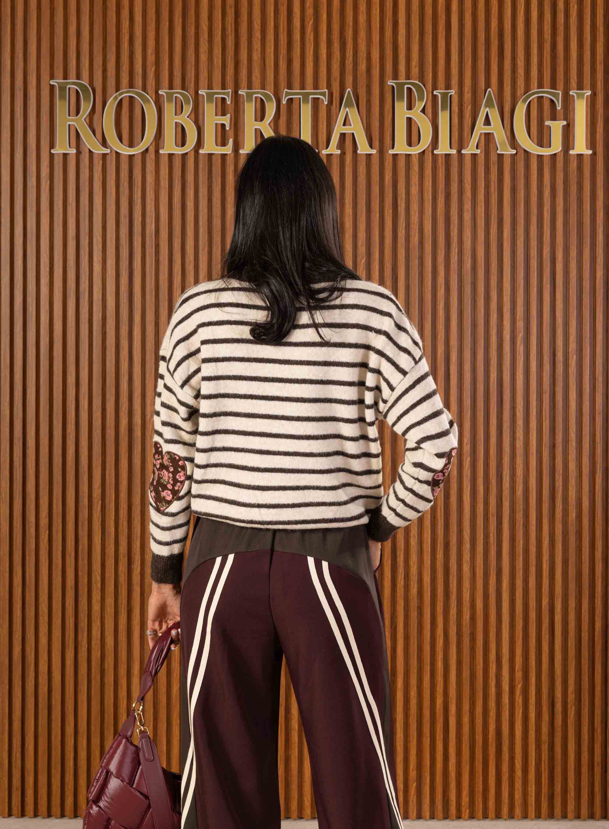 MAGLIA OVER A RIGHE CON TOPPE CUORE SU GOMITI E DETTAGLIO RB