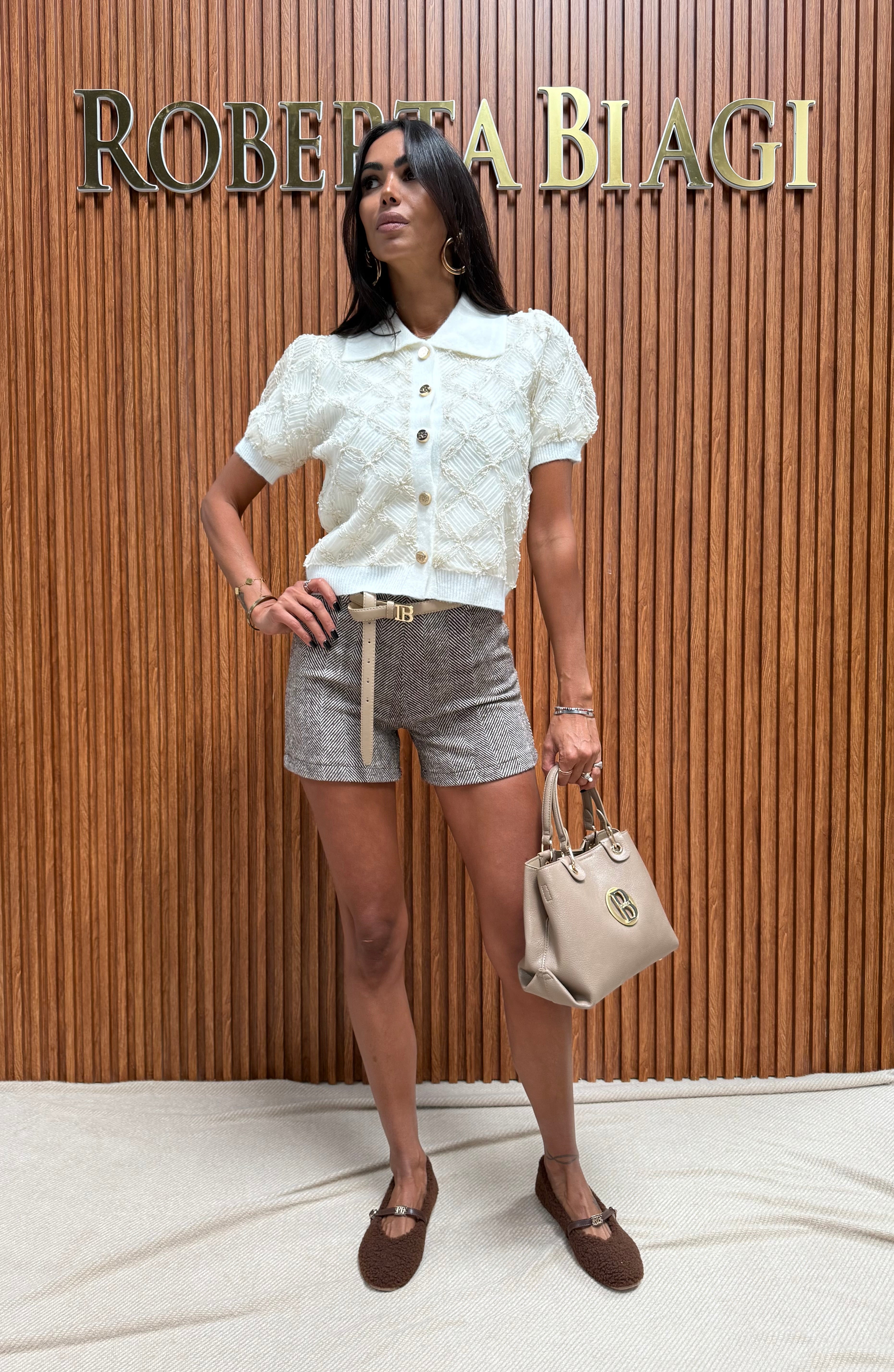 Forma del prodotto MAG7676 CARDIGAN CON MANICA CORTA DECORATO E BOTTONI RB ORO €89,00 SKU: MAG7676 Quantità Esaurito Size Runs small True to size Runs large