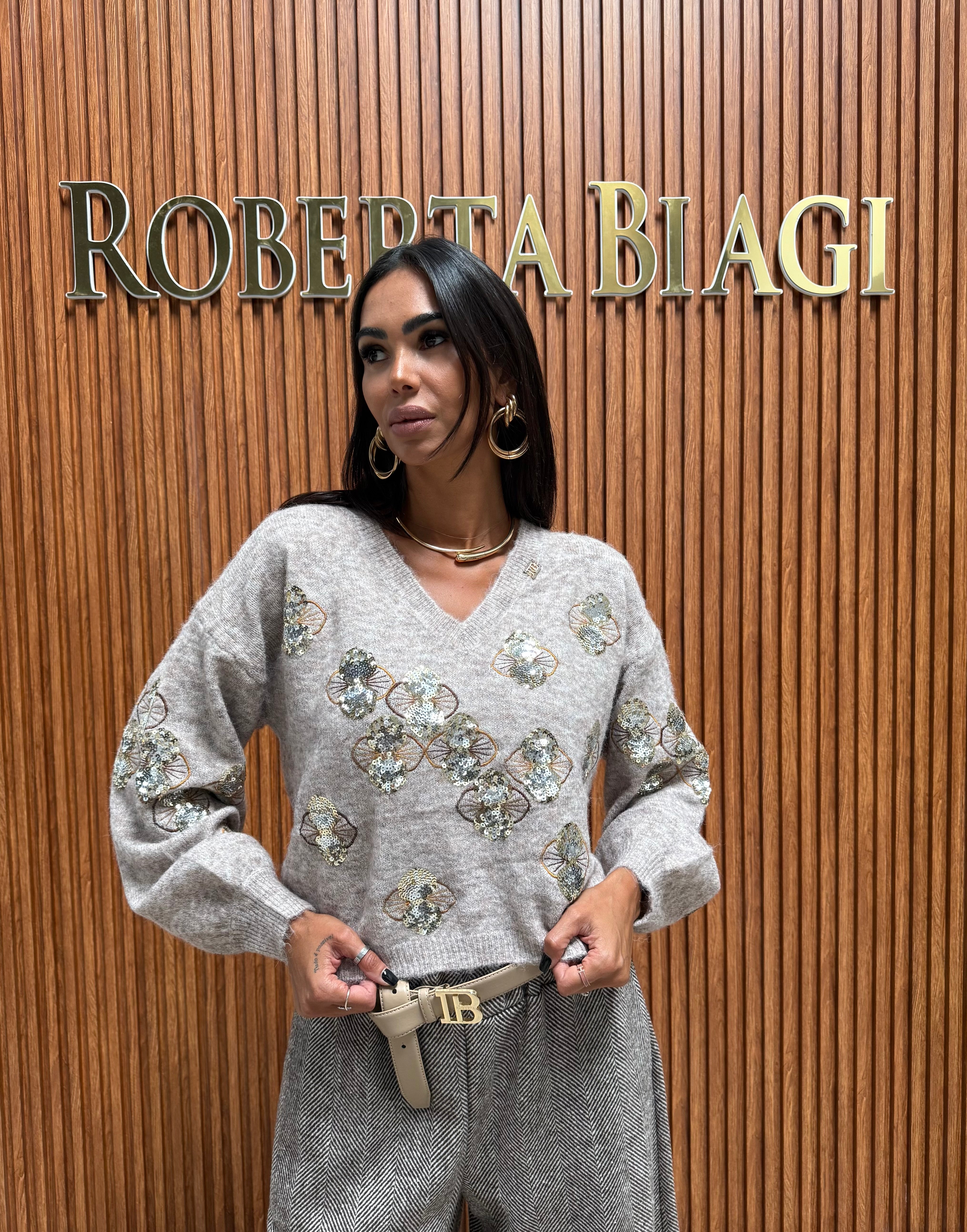 Forma del prodotto MAG7696 MAGLIA SCOLLO V CON RICAMO IN PAILLETTES €69,00 SKU: MAG7696 grigio / UNICA Nero / UNICA Taupe / UNICA Panna / UNICA Colorgrigio TAGLIA UNICA Quantità Aggiungi al carrello Size Runs small True to size Runs large
