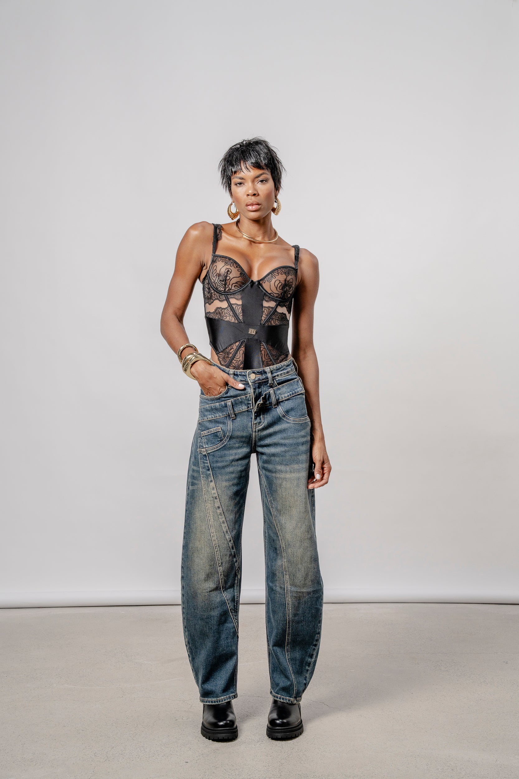 Forma del prodotto PAN4454 PANTALONE DENIM CON TAGLI DOPPIA CINTURA €89,00 TAGLIA 40 42 44 46 48 Quantità Aggiungi al carrello Size Runs small True to size Runs large