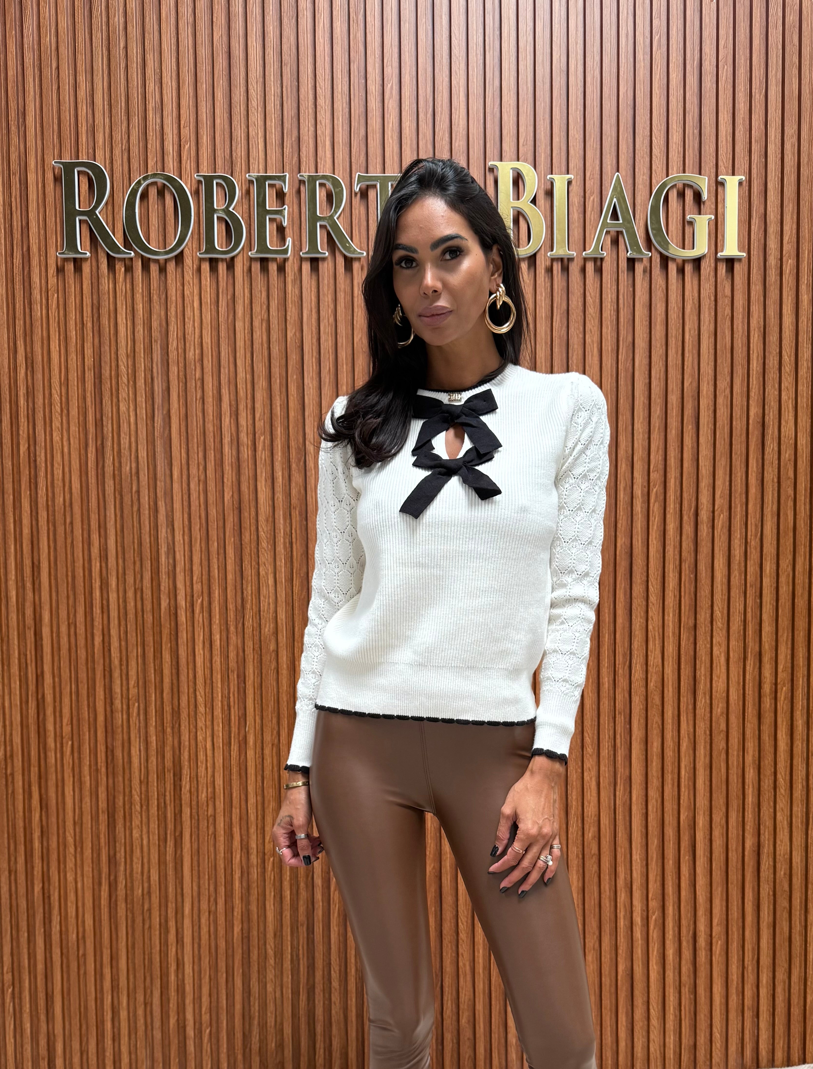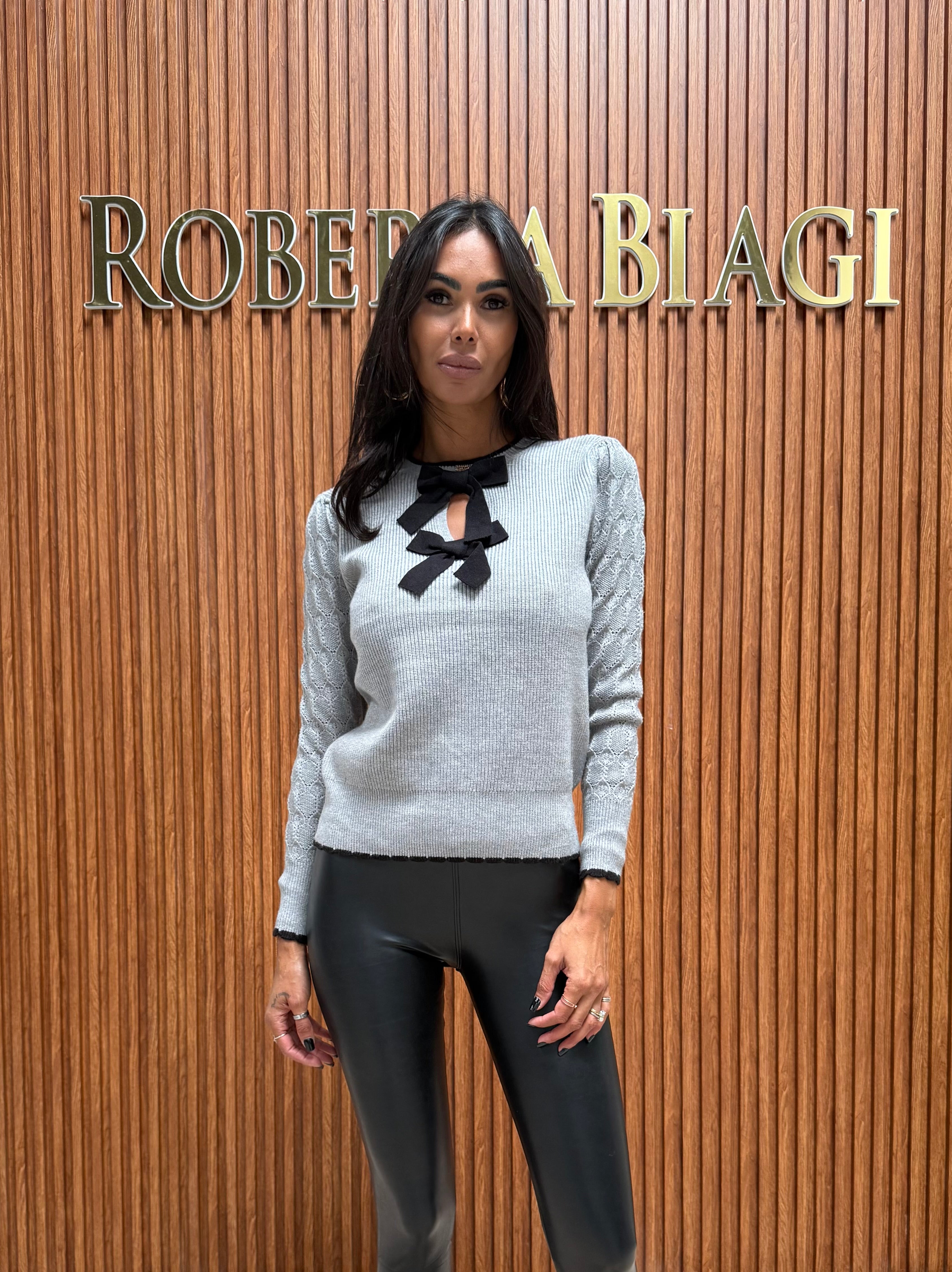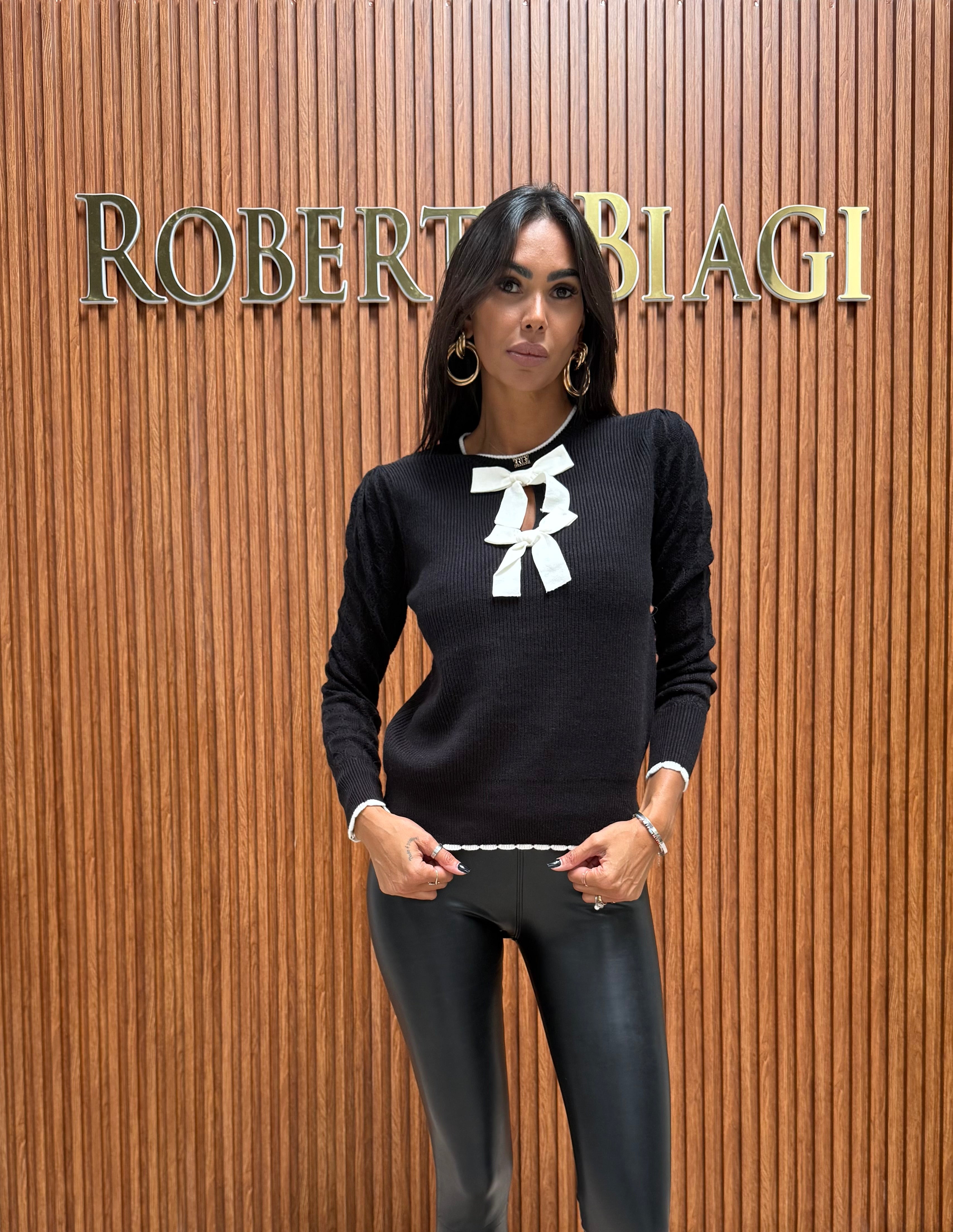 MAGLIA GIROCOLLO CON FIOCCHI E MANICHE RICAMATE