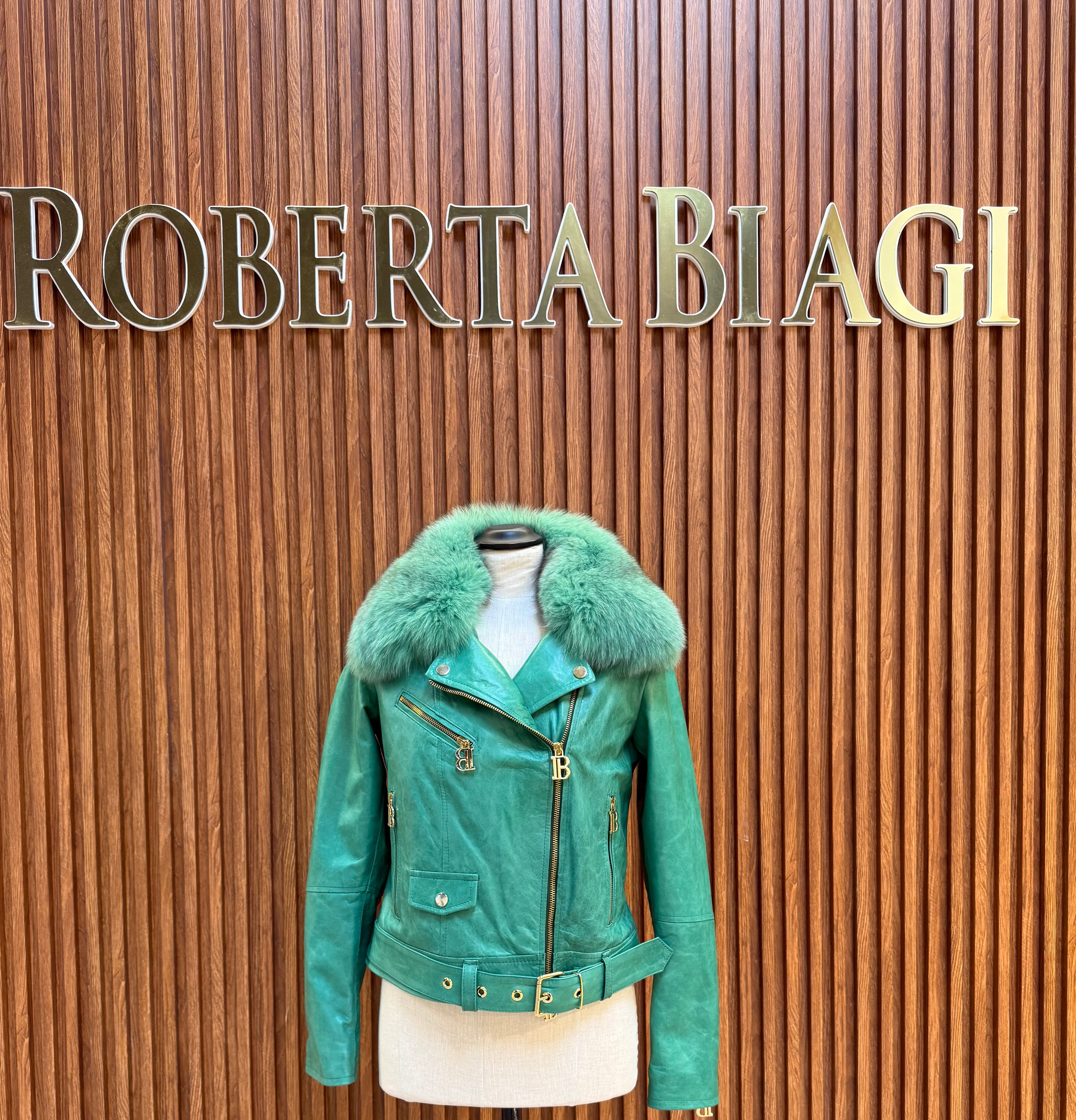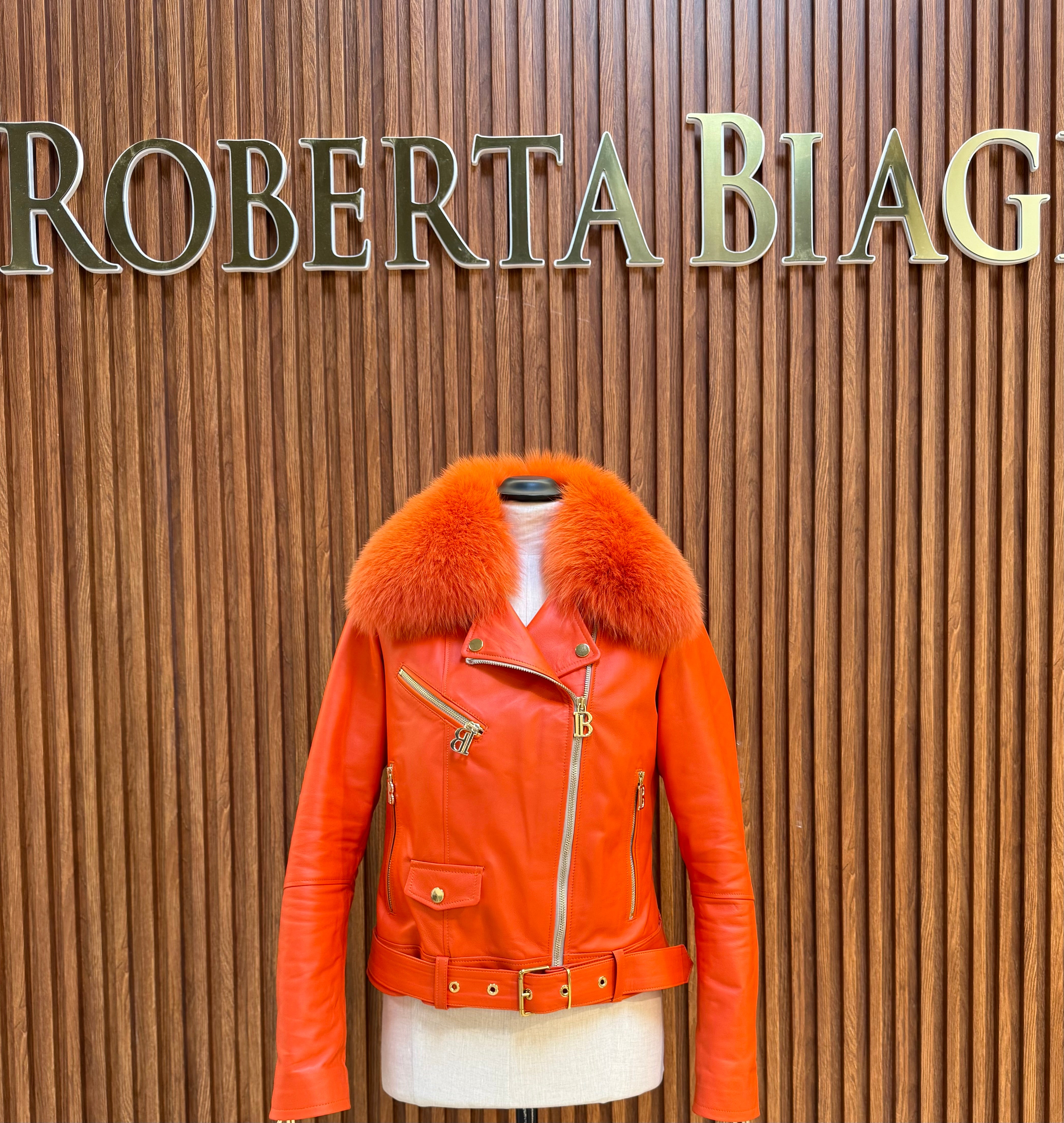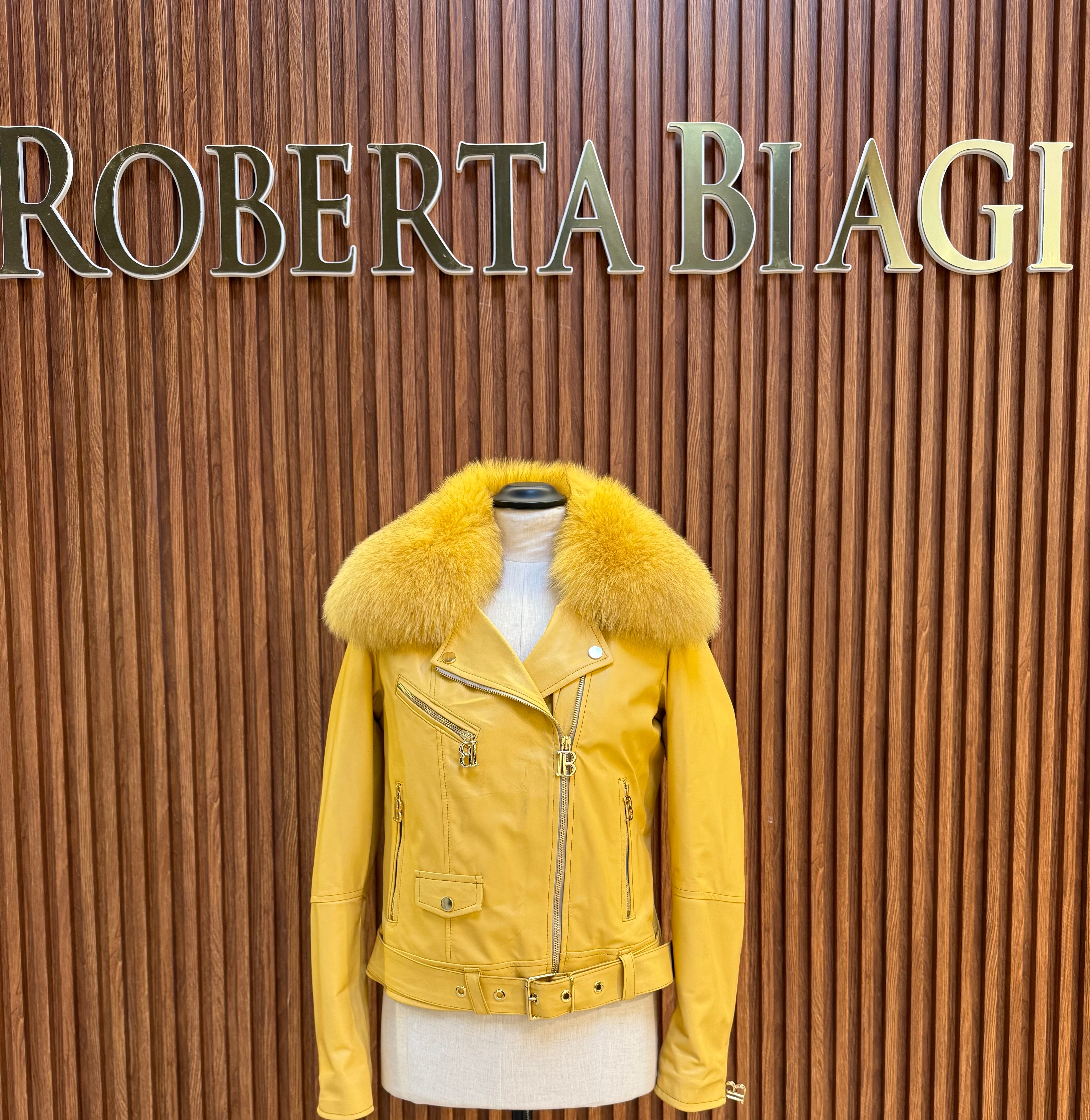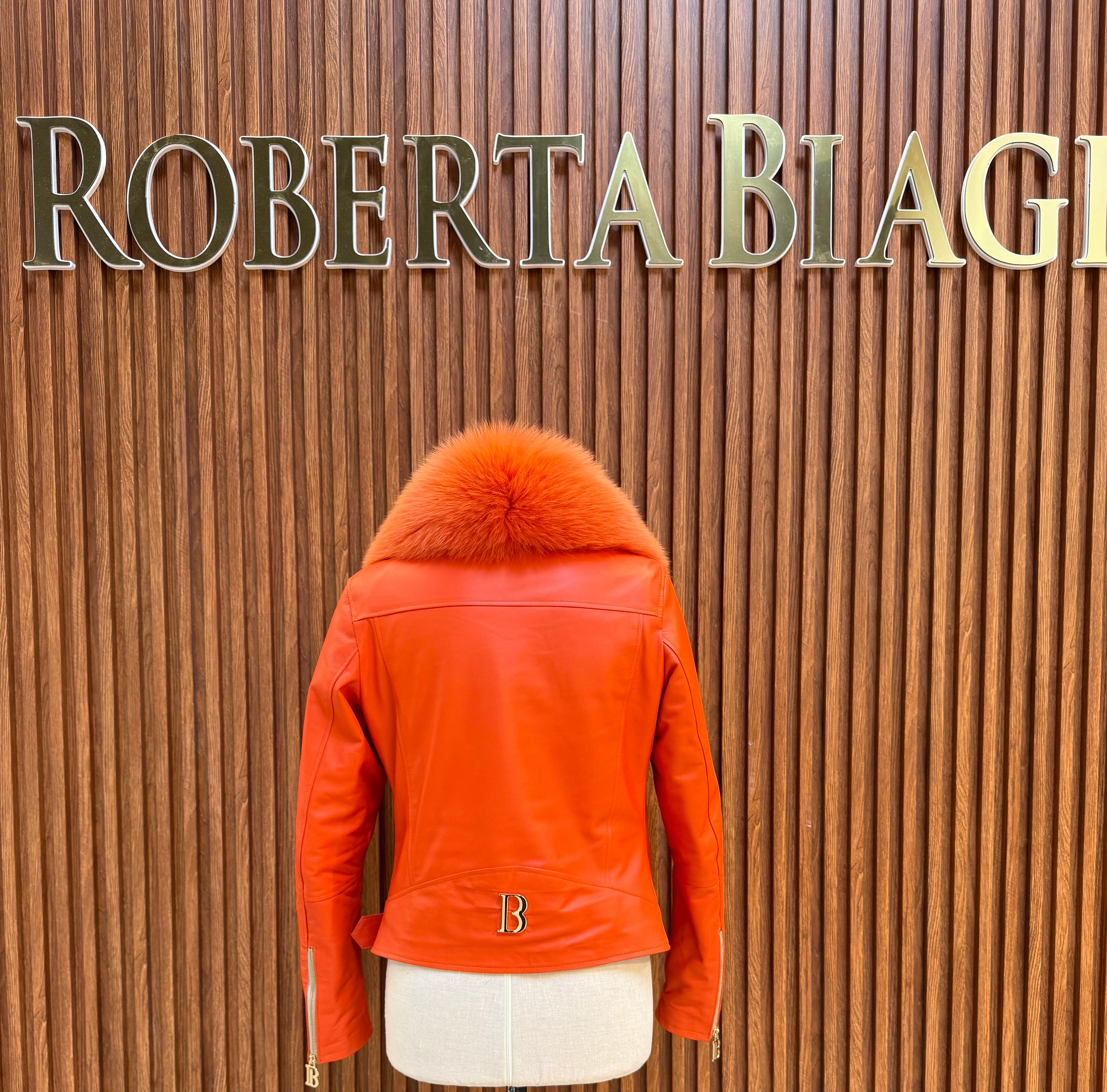 Giubbino in vera pelle con fodera in cachemire e collo in vera volpe pelliccia