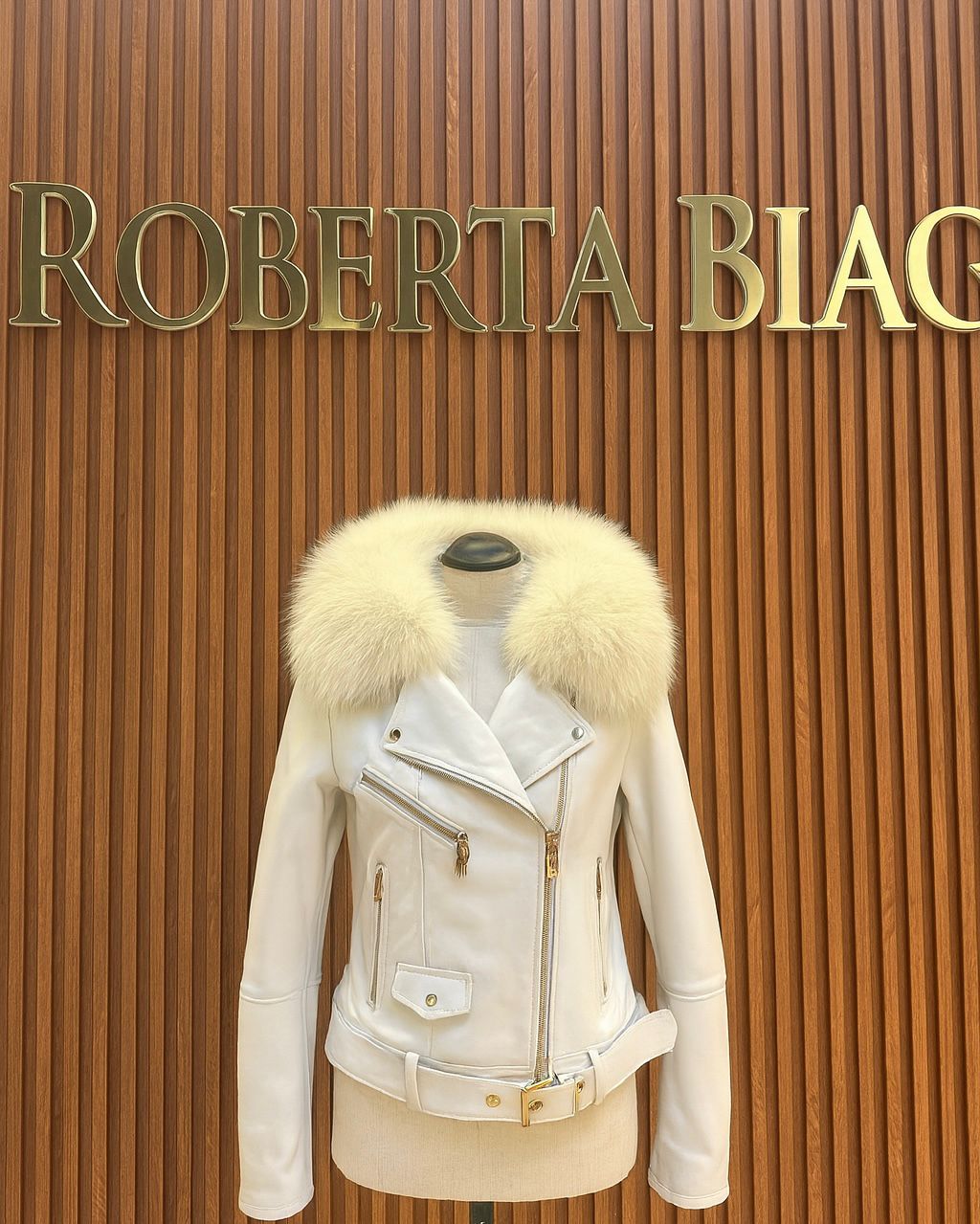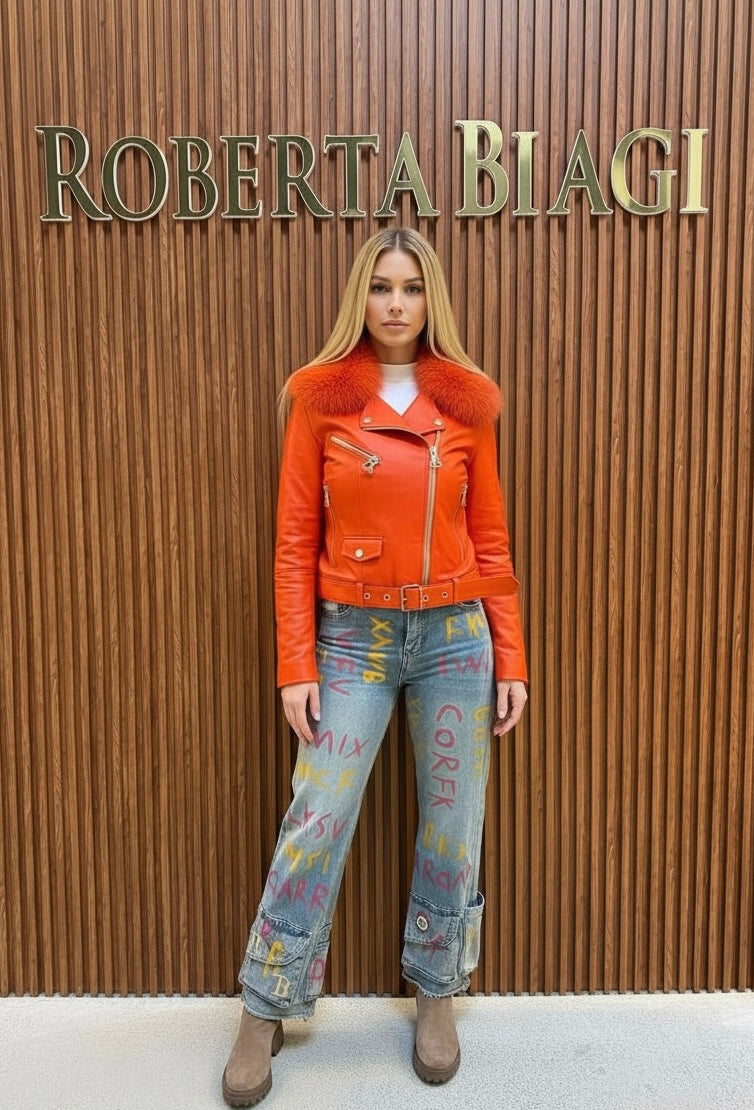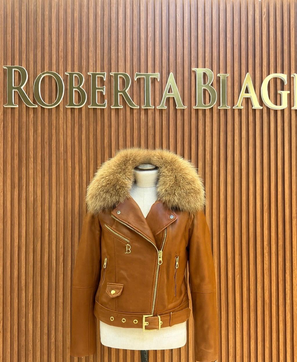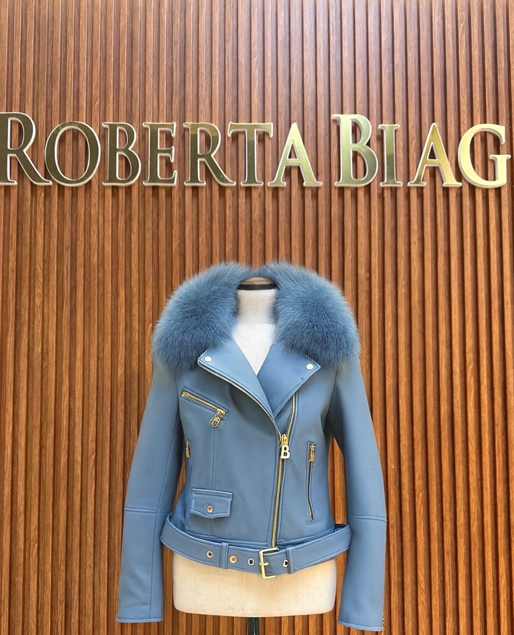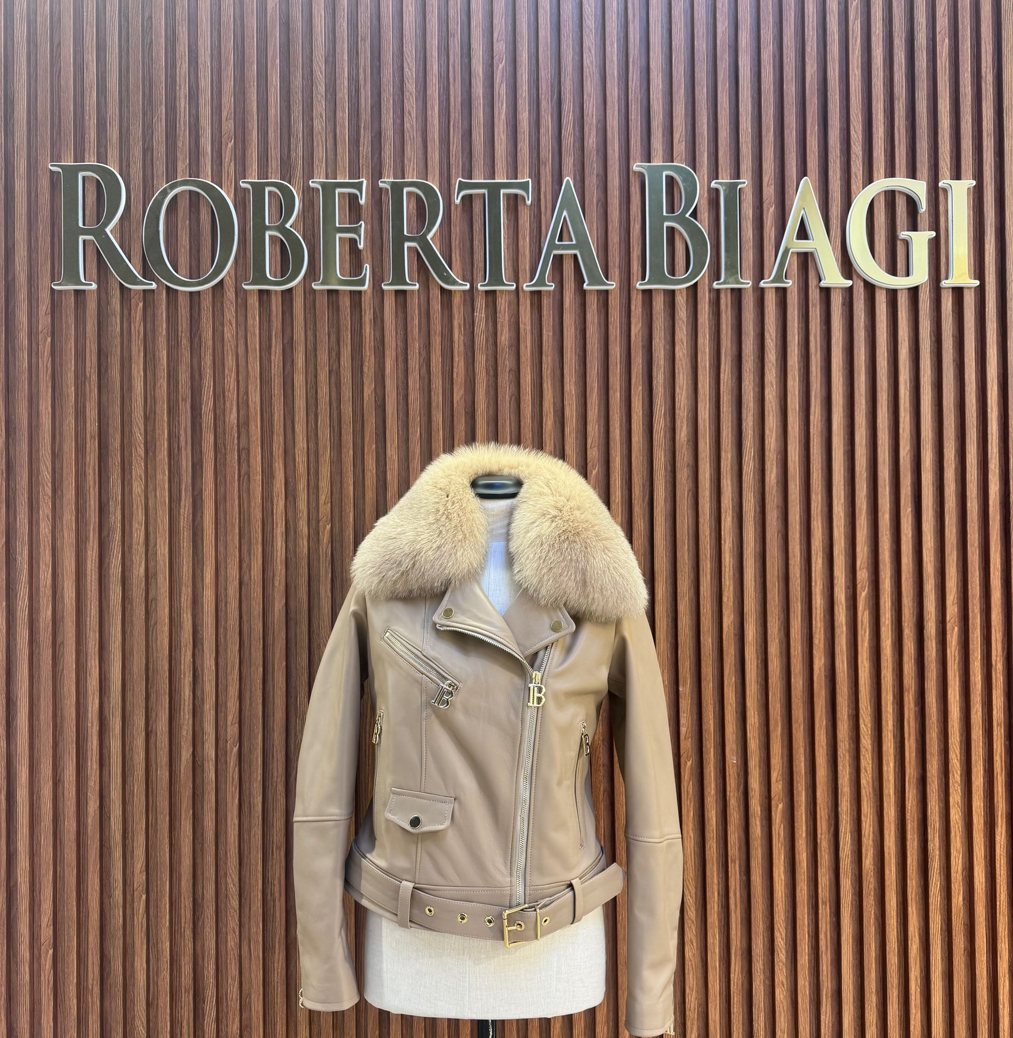 Giubbino in vera pelle con fodera in cachemire e collo in vera volpe pelliccia