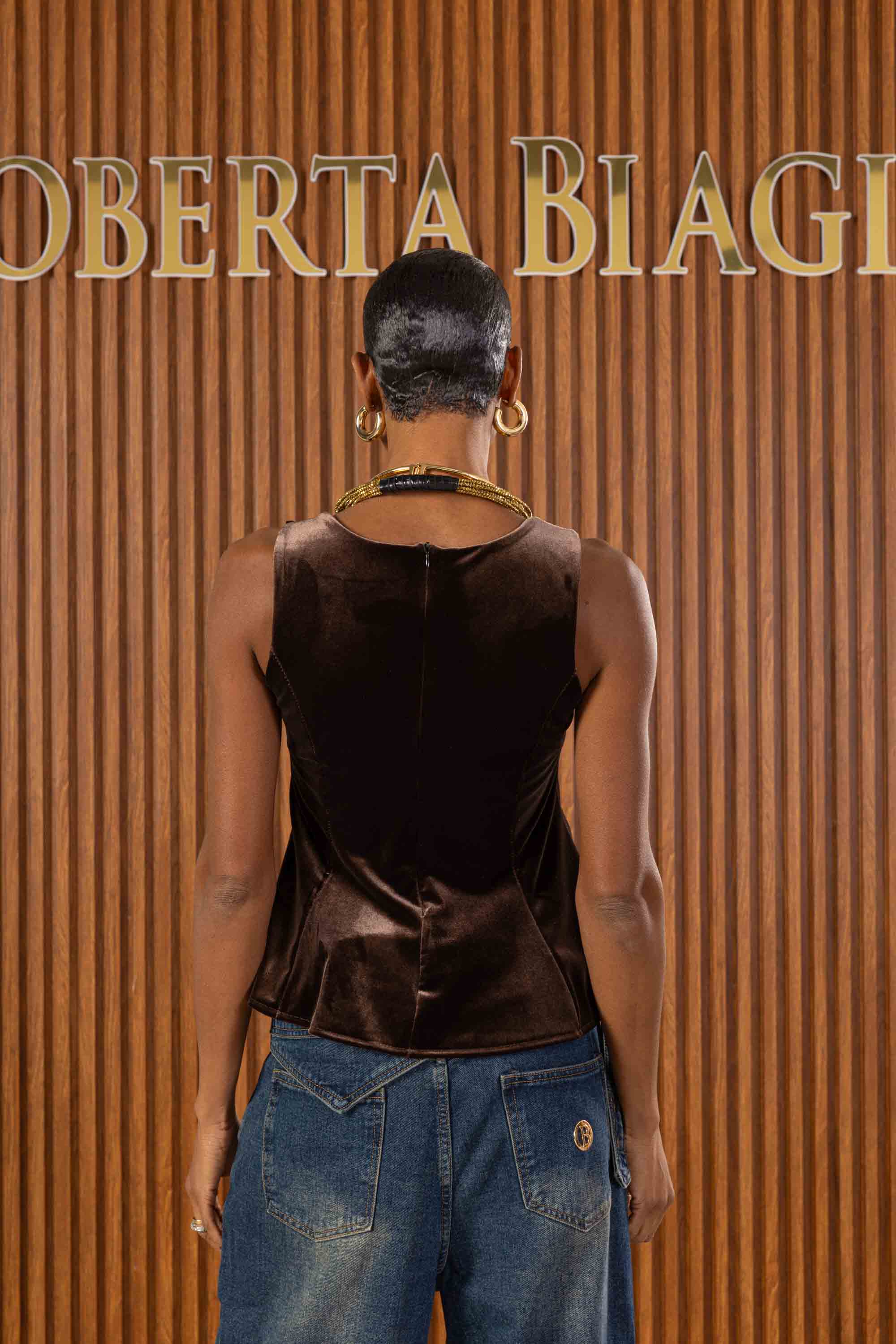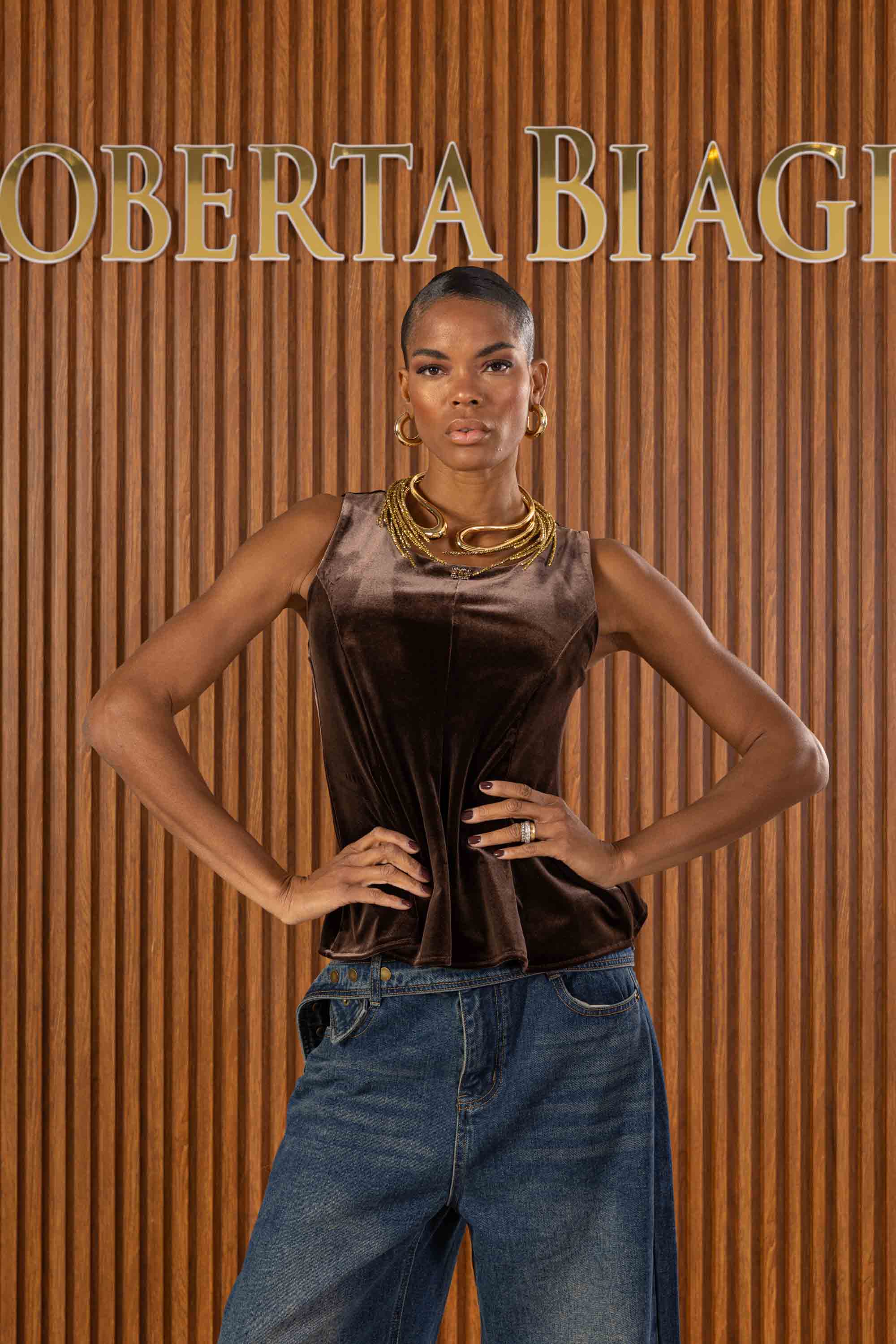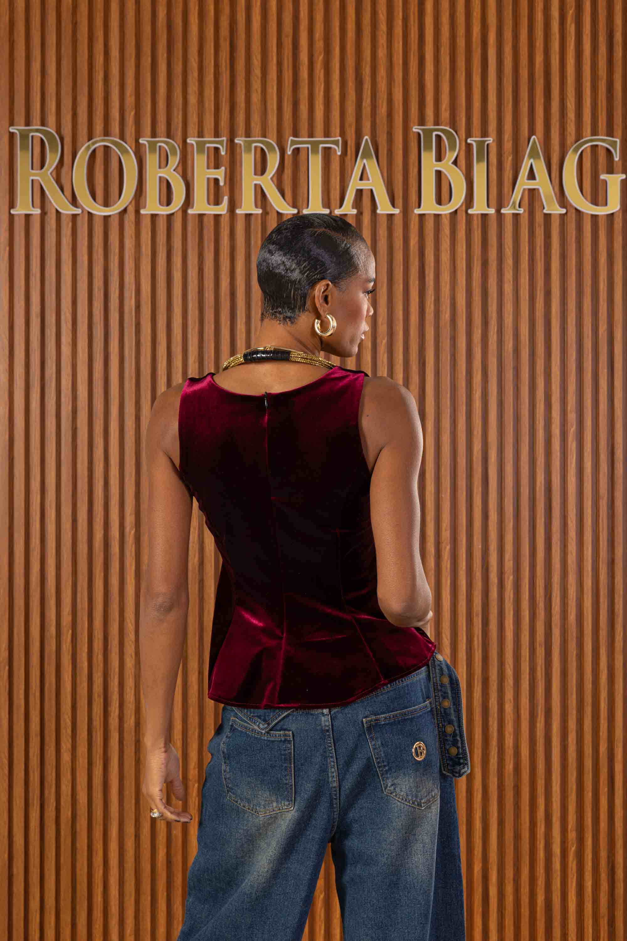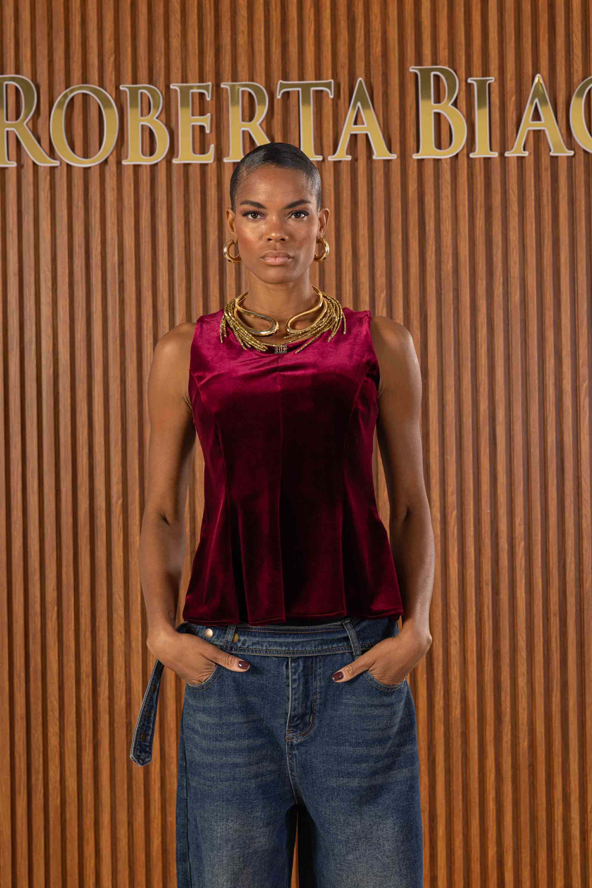 MAGLIA GIRO MANICA IN VELLUTO CON PENCE E DETTAGLIO RB