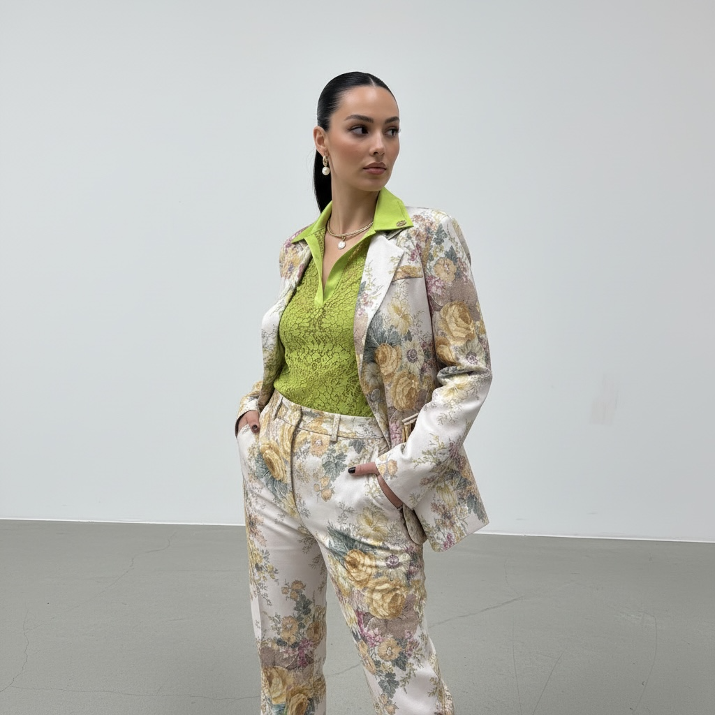 TAILLEUR A FIORI CON PLACCA RB GRANDE 50%VISCOSA 50%POLIESTERE