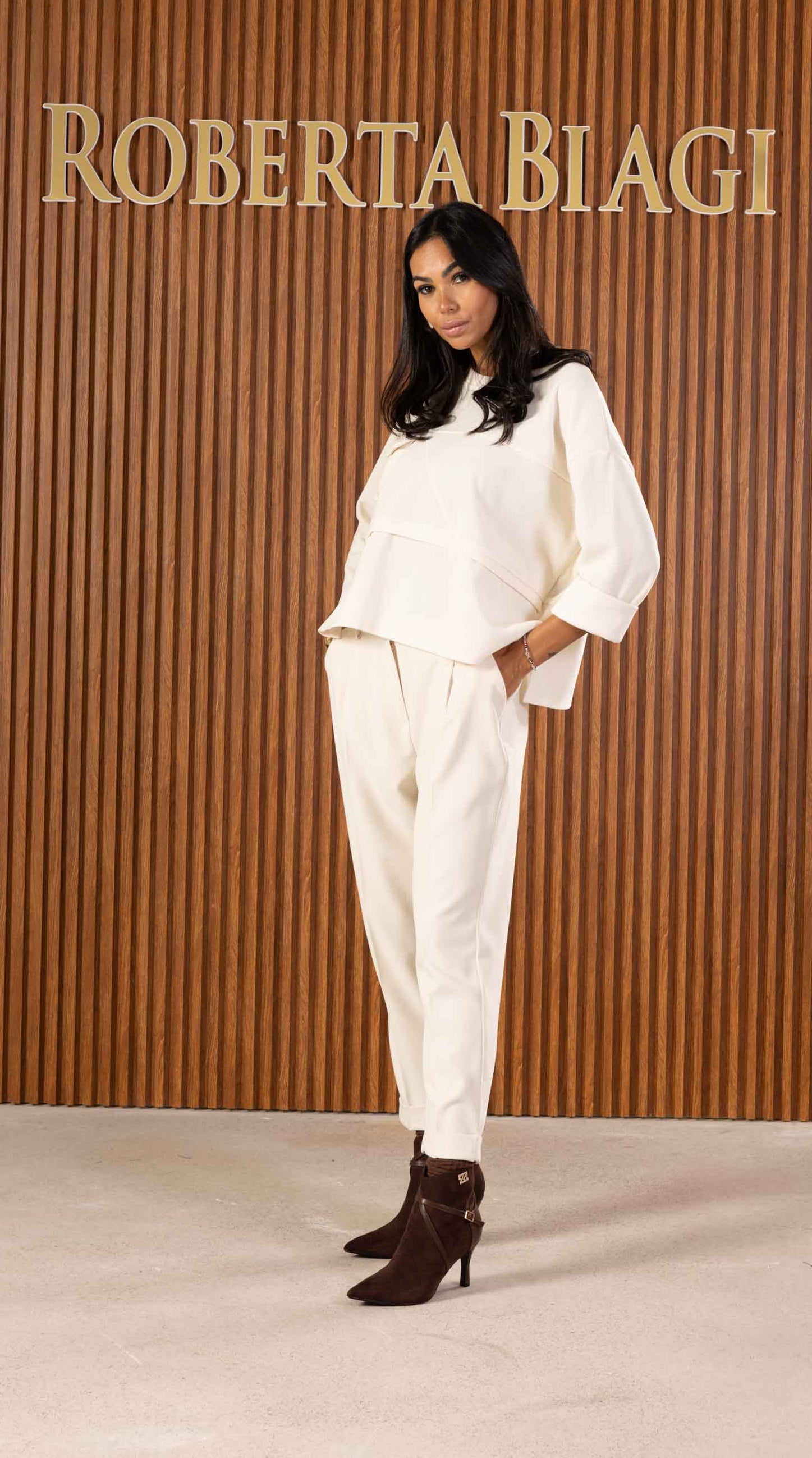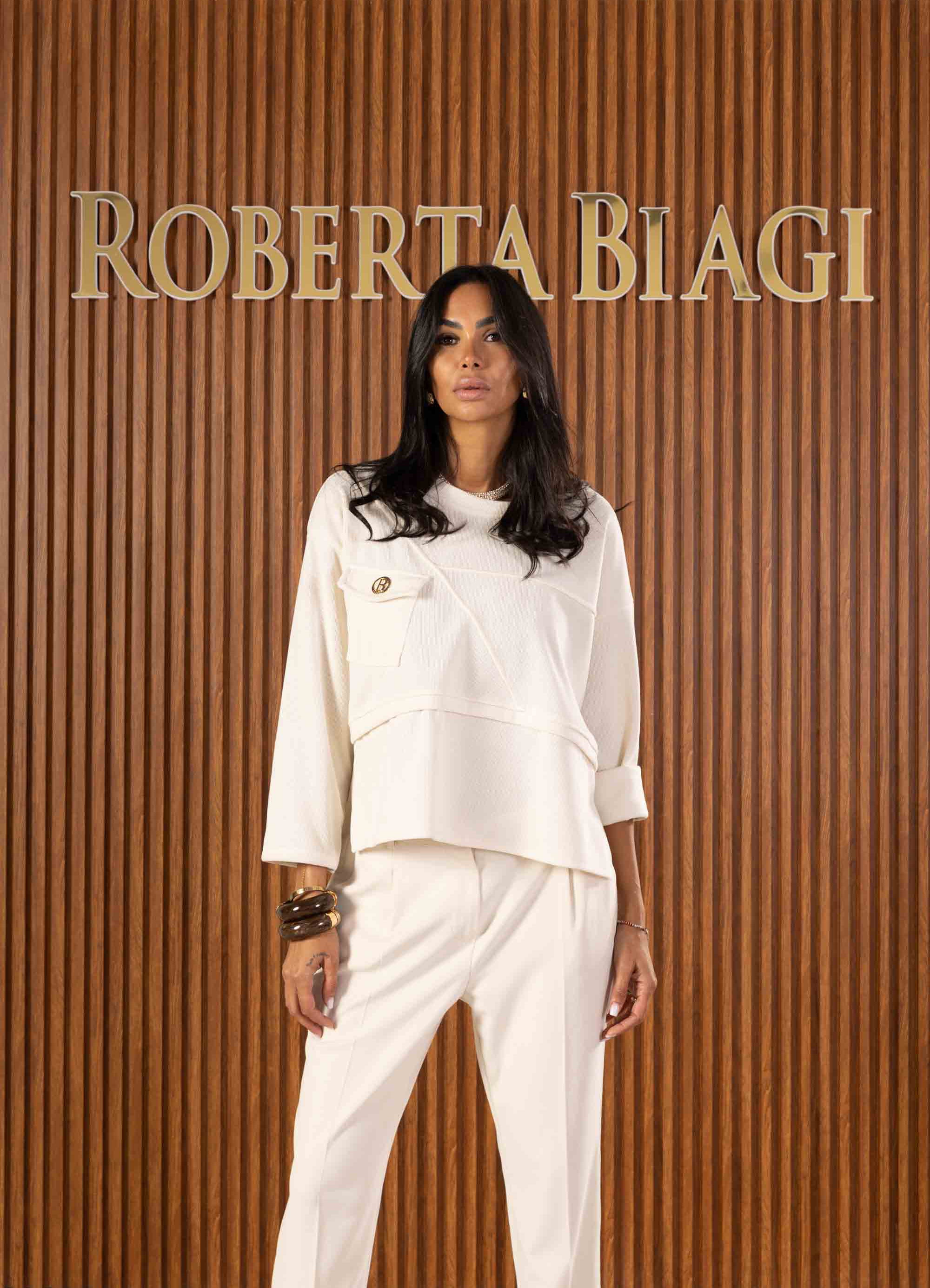 MAGLIA IN VISCOSA VELLUTATA CON DETTAGLIO RB